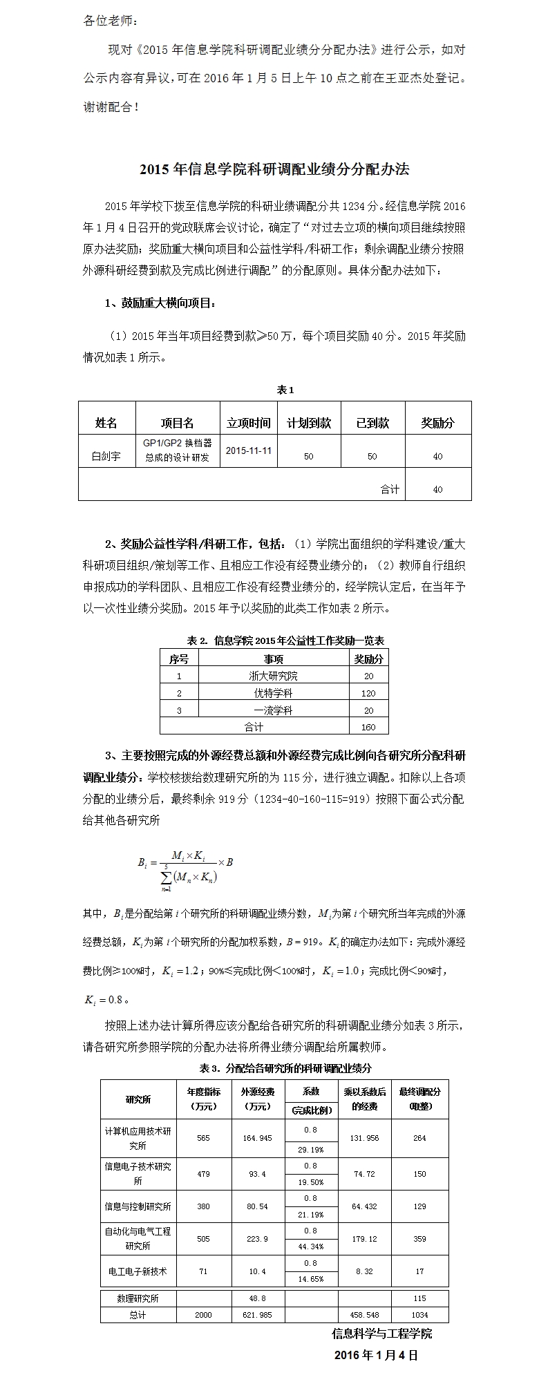 关于《2015年tyc8722太阳集团科研调配业绩分分配方法》公示的通知