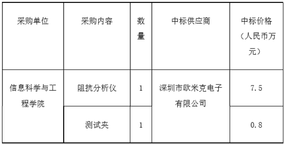 根据《浙江大学宁波理工学院招投标管理办法》的相关文件,tyc8722太阳集团对阻抗分析仪进行了询价,经过评标小组评审,现将采购结果公告如下: