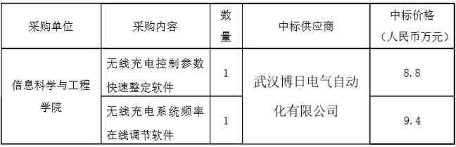 根据《浙江大学宁波理工学院招投标管理办法》的相关文件,tyc8722太阳集团对无线充电上位机软件进行了询价,经过评标小组评审,现将采购结果公告如下: