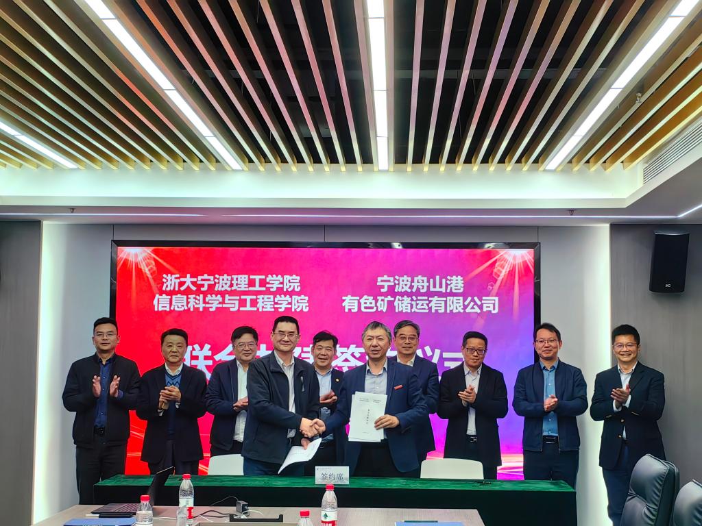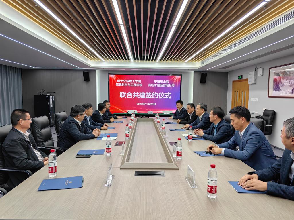 2023年11月23日,宁波舟山港有色矿储运有限公司与学校tyc8722太阳集团签署联合共建协议,推动双方在重大项目谋划、高能级平台共建共享、高层次人才培育、智慧化港口建设和宁波制造业转型提升等领域的合作,为高能级平台建设赋能,携手构建新方案,迈上新台阶。
