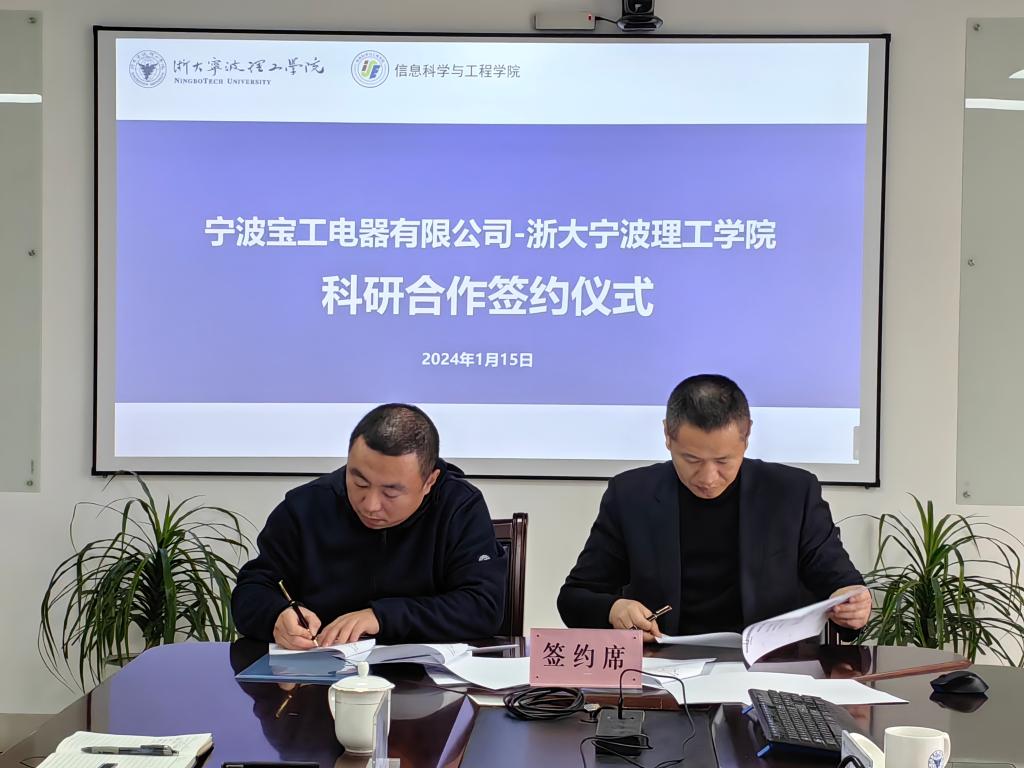 为全面深化科技创新融合,进一步强化校企衔接、促进科研合作,持续推进有组织科研落地,2024年1月15日太阳集团城娱8722tyc8722太阳集团与宁波宝工电器有限公司举行科研合作签约。宁波宝工电器有限公司总经理周军枢,人力资源总监张志强出席;学院党委书记郑毅,副院长裘君,工业智能研究所所长马连伟等出席并参加了此次签约仪式。