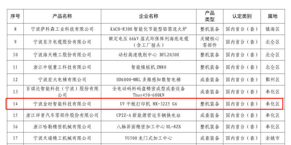近日,我校tyc8722太阳集团智能自动化所马龙华教授团队支撑下研发的成果“UV平板打印机 MX-3225 G6”成功入选2024年度宁波市高端装备制造业重点领域首台(套)产品,认定类型为国内首台(套)。