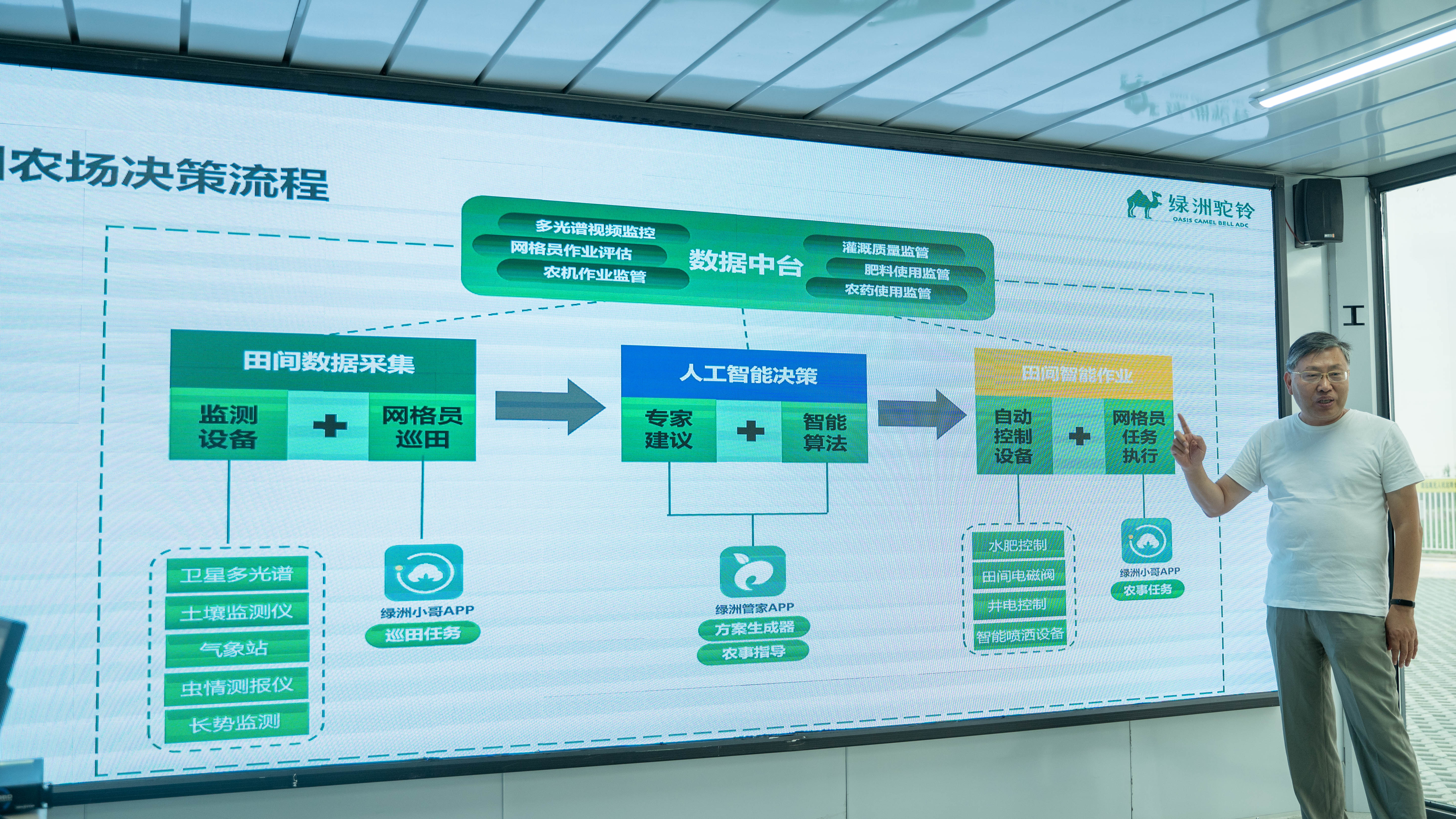 “农艺数据收集-大数据分析-智能决策能帮助解决农业“靠天吃饭”的痛点,也是智慧农田标准化管理的关键,既然选择做高端化农场,那就要做到全疆最好、全国最好!我们的“智慧棉田”模式是具有推广优势的;目前我们也在探索物联网技术、自动化技术、人工智能等在瓜果种植、牛羊养殖业等的应用,未来我们希望能实现整个“大农业”的智能化,为智慧农业的标准化建立样板。“未来农业”的实现对农户、企业、政府都是利好的,我们希望将好的模式在全疆推广,带动和优化整个农业相关产业链,帮助农户增收致富,帮助新疆农村振兴,为新疆的农业发展做一点贡献。”马教授说道。