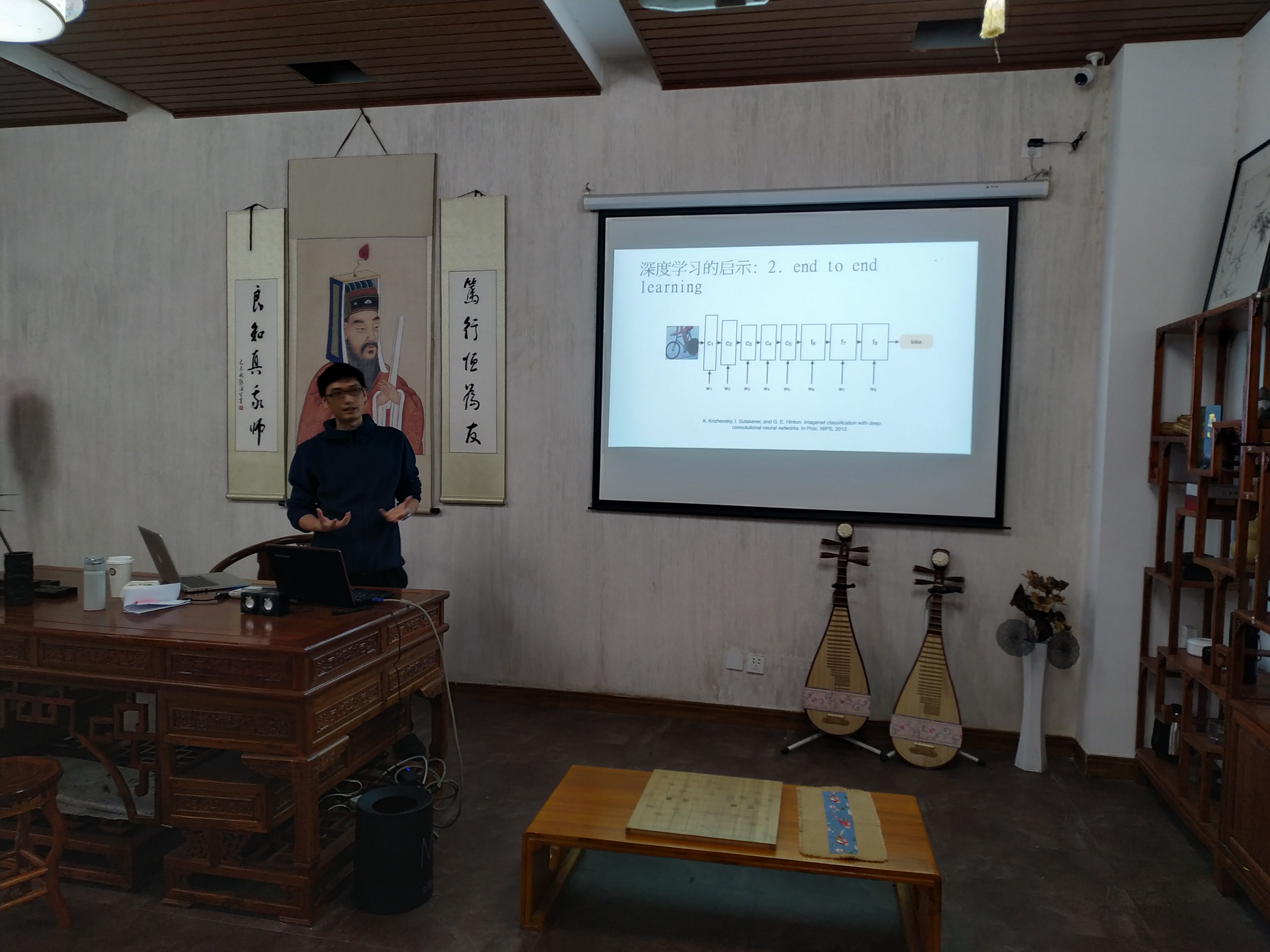 刘琮博士报告的题目是《基于深度学习的医学影像分割和配准研究》,报告中,刘琮博士从研究背景简介、图像配准、图像分割、一些思考四个方面对本次报告的内容进行了详细汇报,从问题的意义、手工分割和配准的难点、当前自动分割和配准算法和不足之处、深度学习的启示到配准工作改进的方向,最后是对深度学习在医学领域应用的思考。与会的各位老师就报告中感兴趣的问题一起进行了交流与探讨。