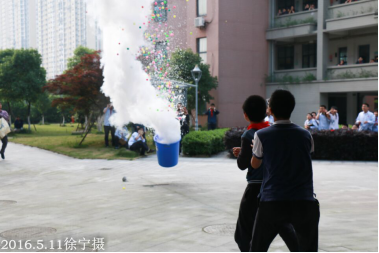 科学实验想必人人都见过,但是能在现场吃棉花糖、冰激凌,还能看到1600只彩色乒乓球被引爆的科学实验却未必人人都能体验。正值全国2016 年科技活动周之际,浙江大学宁波理工学院物理探索与创新实验室的蒋卫建老师给鄞州外国语中学、龙赛中学的同学们带来了一次神奇的科学实验。
