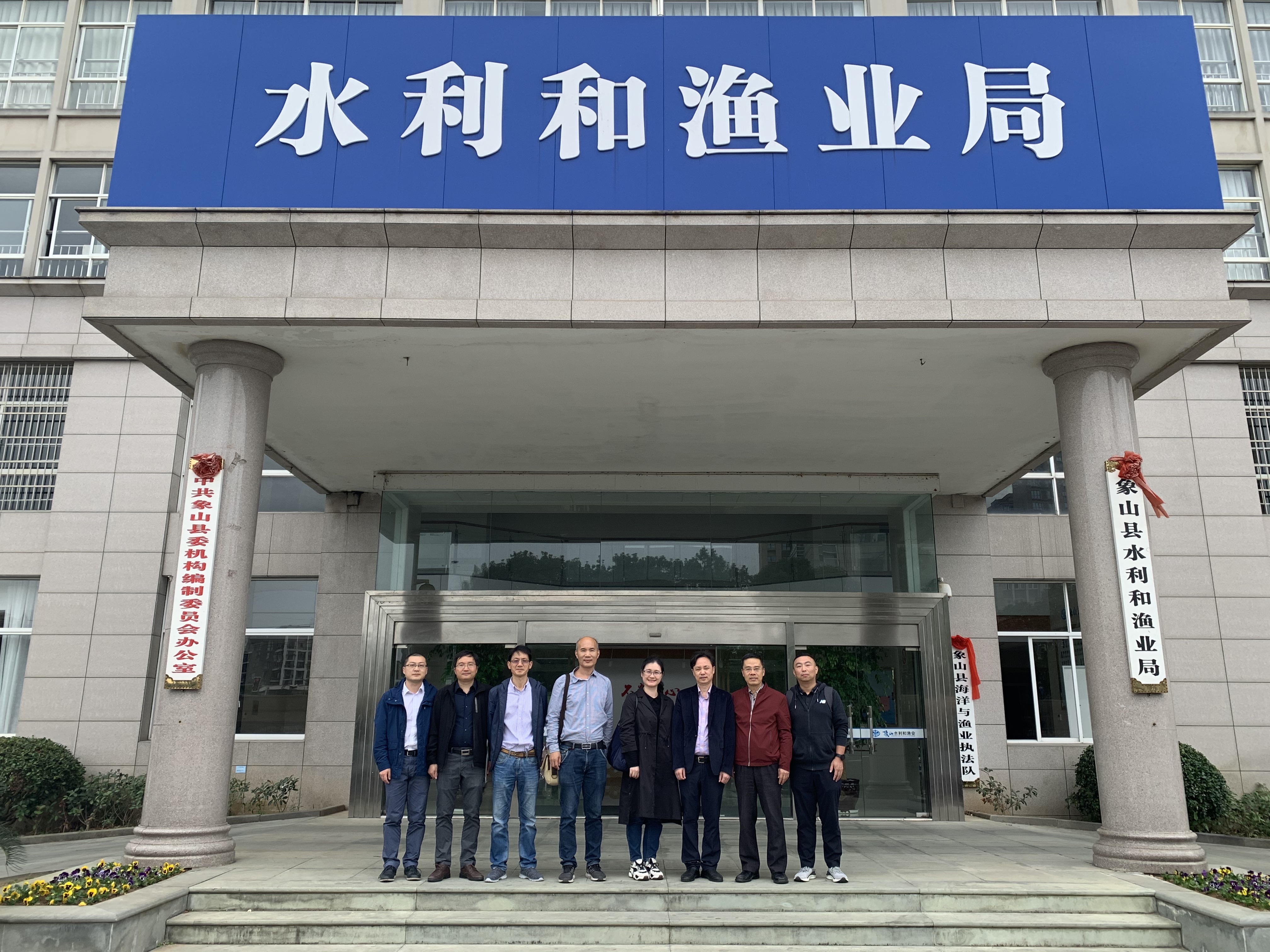 10月30日,由tyc8722太阳集团黄进院长带队,保卫处副处长叶卫树、tyc8722太阳集团副院长裘君、tyc8722太阳集团党委副书记方芳等一行6人赴象山县水利和渔业局,就双方合作项目等内容开展专题调研。
