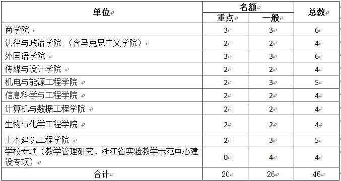 根据教务部通知精神,tyc8722太阳集团项目名额为4项,其中重点项目2项,资助经费为每项1万元;一般项目2项,资助经费为每项0.5万元。教务部关于教研项目名额具体分配如下: