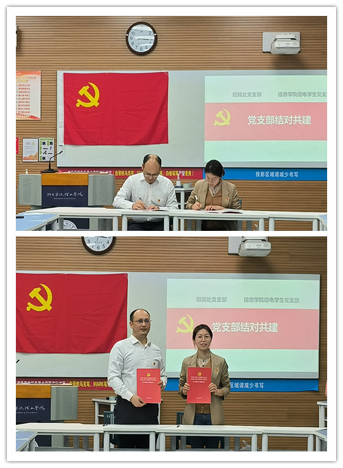 在支部结对基础上,招就处党支部党员教师们与信电学生党支部毕业生学生党员也一一结对,在学生就业过程中进行思想引导、就业、升学指导。
