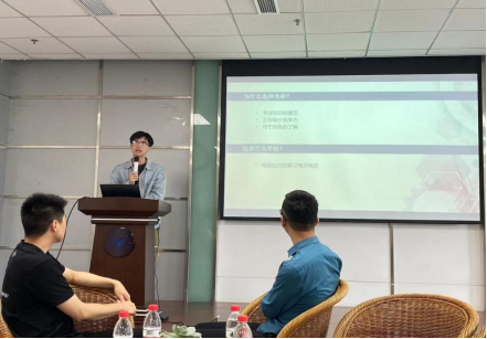 立志求学、攀登学术高峰的校友张盛分享了他选择考研、考博的心路历程和备考经历。张盛认为进一步读研深造使自己专业学习更深入,在就业时可以提高竞争力,凭借这一简单的初衷他才选择了考研。三年的研究生学习让张盛对专业掌握更加精深,再次决定继续读博深造,他鼓励在座的同学寻找适合自己的方向,多吸取前辈经验,积极参加学科竞赛,积累项目、实践经验,无论就业还是升学都大有帮助。