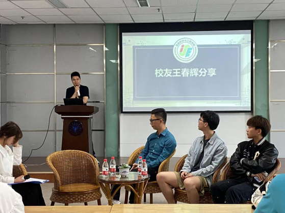 就职于学院合作企业的王春辉从获取工作信息、求职、工作岗位经历等展开分享,他强调同学们求职就业要综合分析自己的优势,寻找适合自己的岗位,要去公司实地考察参观,了解公司环境、人文氛围等。他强调,找自己热爱的工作才能有足够内驱力推动自己在工作岗位中前进,选工作适应期短暂痛苦会有,但只要努力会越来越好。