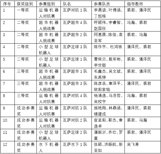 浙江省第七届大学生机器人竞赛获奖队伍名单