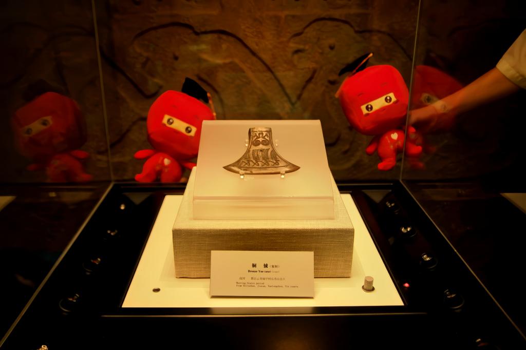 陈列馆里一樽战国时期的“羽人竞渡纹铜钺”为我们揭开了钺与龙舟文化的奥秘:四个头戴羽冠的人正在奋力划桨,钺的顶部则有两条相向的龙纹,直观体现了浙江人民自古以来勇立潮头,奋楫笃行的精神。也正如浙江人民在改革开放的浪潮中,敢于创新、勇于探索。实践队员们仔细阅读着宁波历史陈列中的铜钺简介,直观感受到了在龙舟文化中,钺与龙舟精神的结合也体现着一种历史与现代、力量与智慧的交融。这种对传统文化和精神的尊重与传承,是浙江发展道路上不可或缺的宝贵财富。