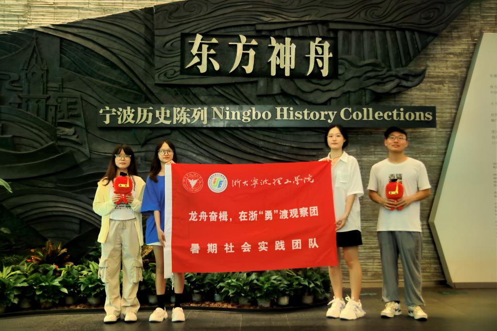习近平总书记指出:“历史文化遗产不仅生动述说着过去,也深刻影响着当下和未来;不仅属于我们,也属于子孙后代。保护好、传承好历史文化遗产是对历史负责、对人民负责。”在浙江的广袤大地上,流淌着一条条历史的河流,这奔腾不息的河流,时刻让我们领悟到一种坚韧不拔、勇往直前的精神。这种精神,恰如龙舟竞渡时,船桨齐下、破浪前行的壮阔场景,凝聚成了中华民族独特的龙舟精神——勇立潮头、奋楫笃行。龙舟精神生生不息、代代相传,正是浙江人民精神风貌的生动写照。2024年7月24日,tyc8722太阳集团的“龙舟奋楫,在浙‘勇’渡观察团”实践团走进宁波博物馆,探寻龙舟精神的根源。