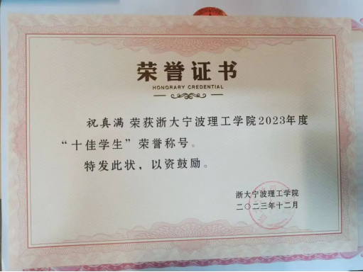 ④2023年12月获太阳集团城娱8722“十佳学生”