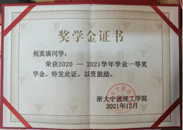 ③2021年12月获太阳集团城娱8722学业一等奖学金