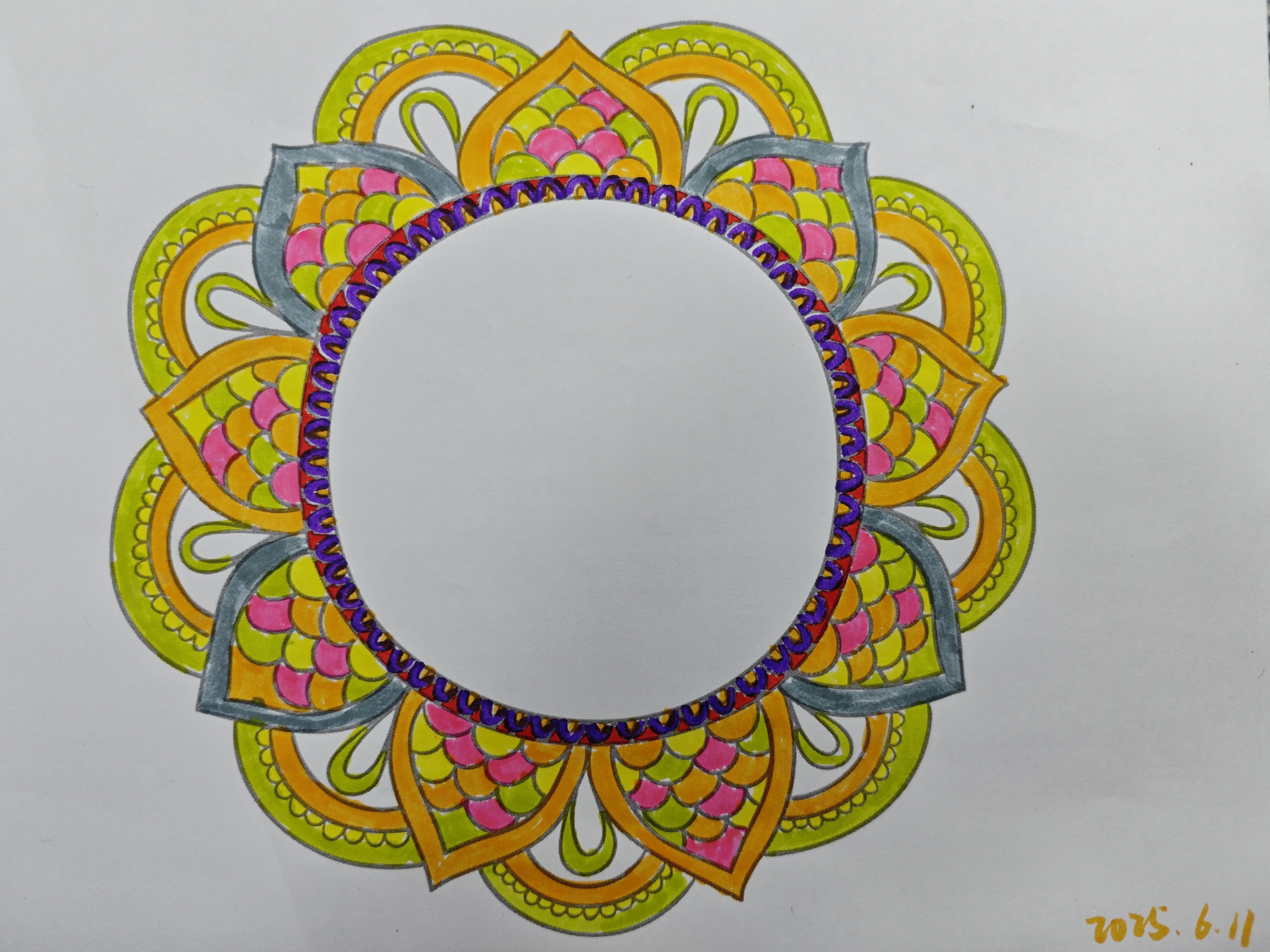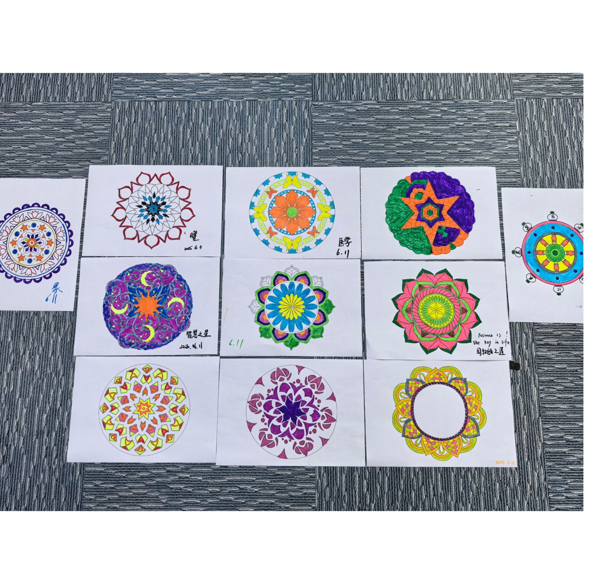 期末阶段学生普遍面临高强度学业压力,选择曼陀罗绘画作为减压工具,正是因其形式简单却能有效引导专注当下,达成情绪的自然疏解与内在秩序的整理。希望同学们在日常生活中也可尝试类似方法,主动关照自我心理状态。