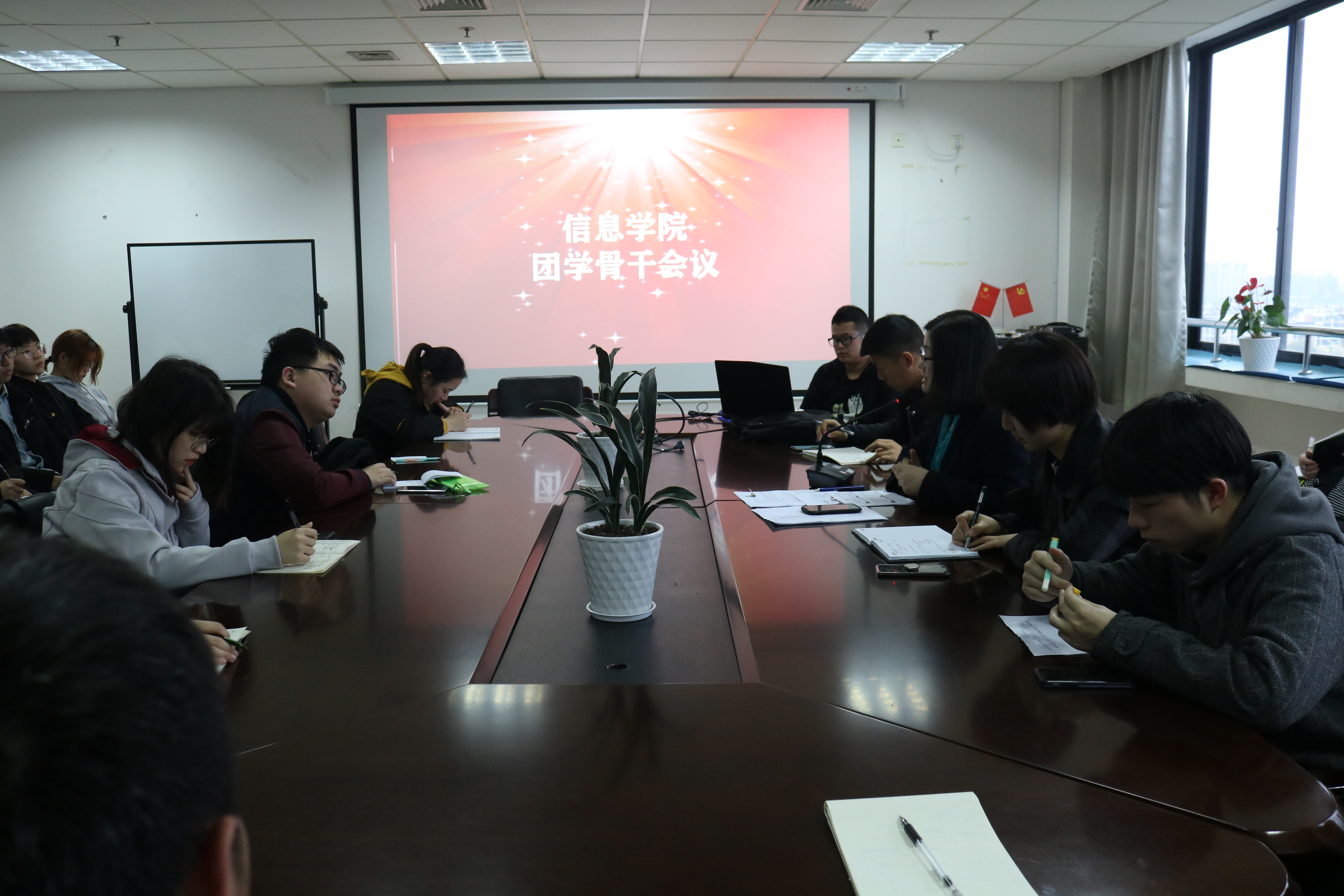 会议伊始,学生会副主席朱超凡同学向团学骨干介绍了“信息文化节”、“男生向前冲”等学院特色品牌活动方案。“男生向前冲”作为本学期重点推进工程,依托科研创新、体质健康、学风建设三大平台,鼓励大学生走出寝室,走进实验室、操场和图书馆,努力实现“科技向前冲”、“座位向前坐”、“成绩向前看”的学生素质提升计划。