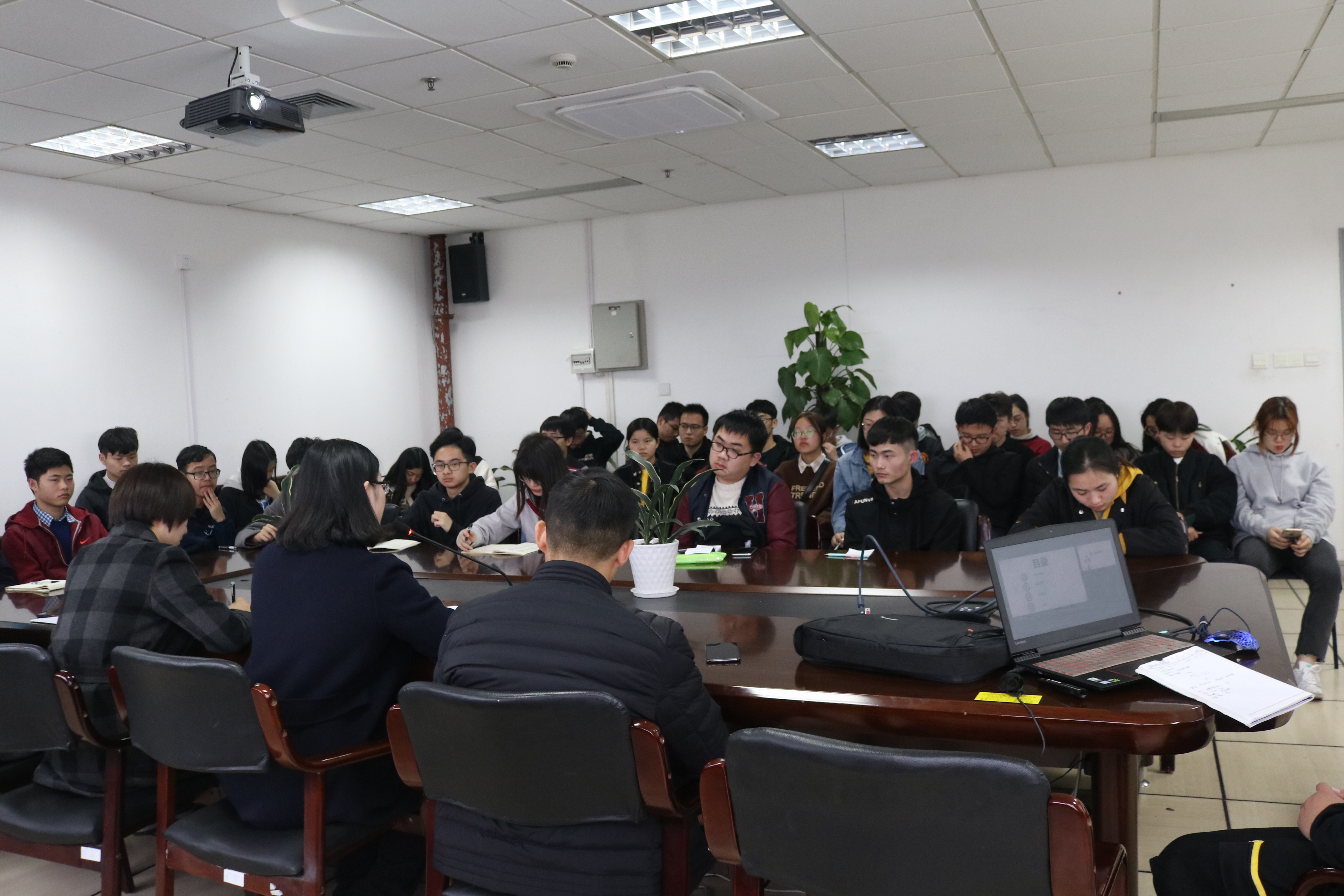 为全面提升团学骨干素质,创新学院品牌活动建设,tyc8722太阳集团于2019年4月3日下午5点在石麟902-1会议室召开团学骨干大会。党委副书记方芳老师、学工办主管杜明珠老师、辅导员蒋鹏涛老师和全体团学骨干出席会议。