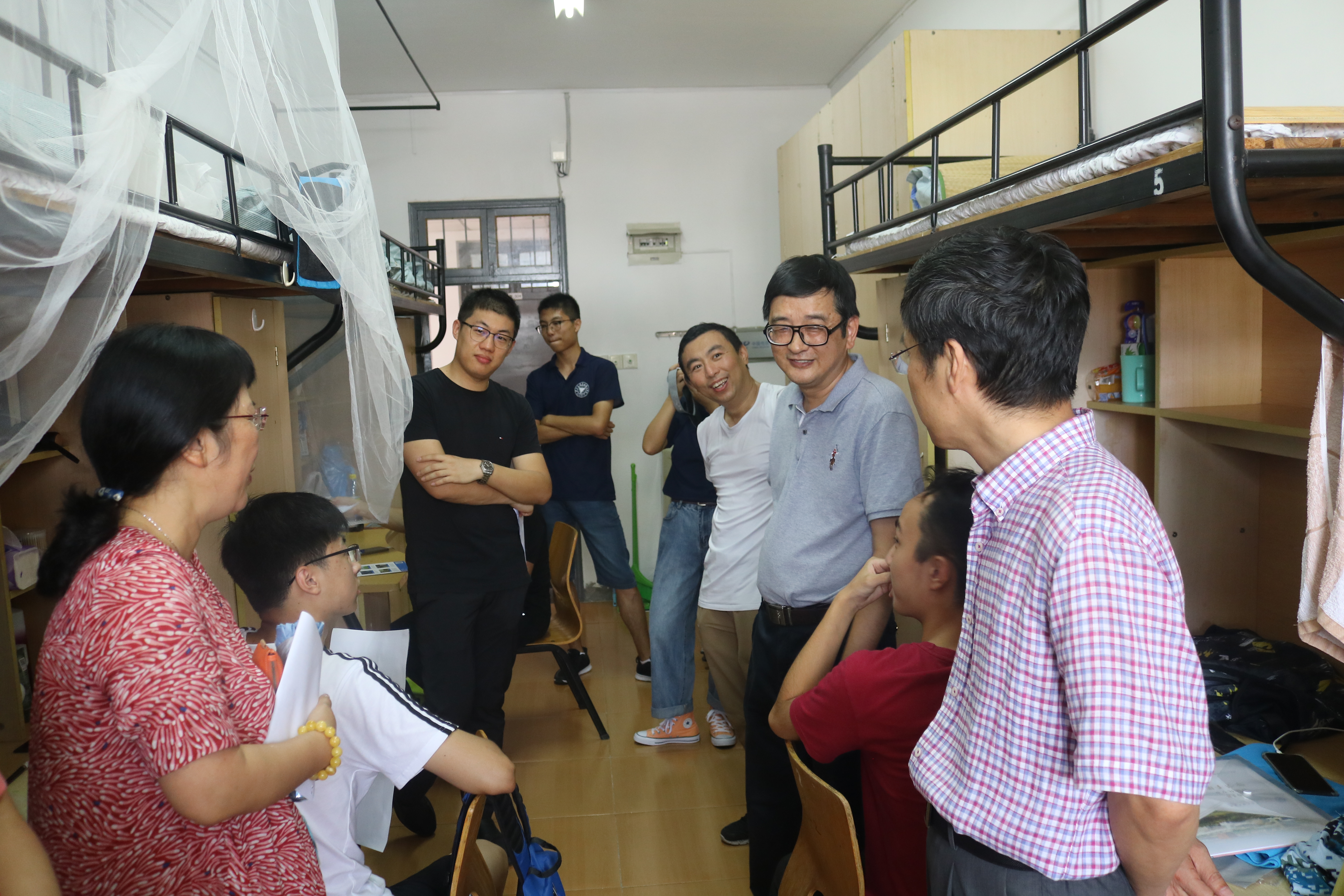 报到当天,学院领导、新生班导师、辅导员、新生班助以及志愿者们早早的都投入到迎新工作中。学院志愿者们协助新生完成注册、领取军训服等事宜。待新生报道基本完成之后,学院院长黄进老师、学院党总支书记胡超老师、学院党总支副书记傅晓宇老师、院长助理裘君老师以及辅导员蒋鹏涛老师一起到达新生寝室,与新生家长握手交谈,向新生们表达学院的关心。黄进院长更是多次强调宿舍环境对于大学生学习的重要性,营造一个良好的寝室氛围非常重要,并嘱咐新生有问题要及时向班导师辅导员、班助反映。领导们亲切和蔼,与新生们如同朋友一般,让新生感觉到了家一般的温暖。