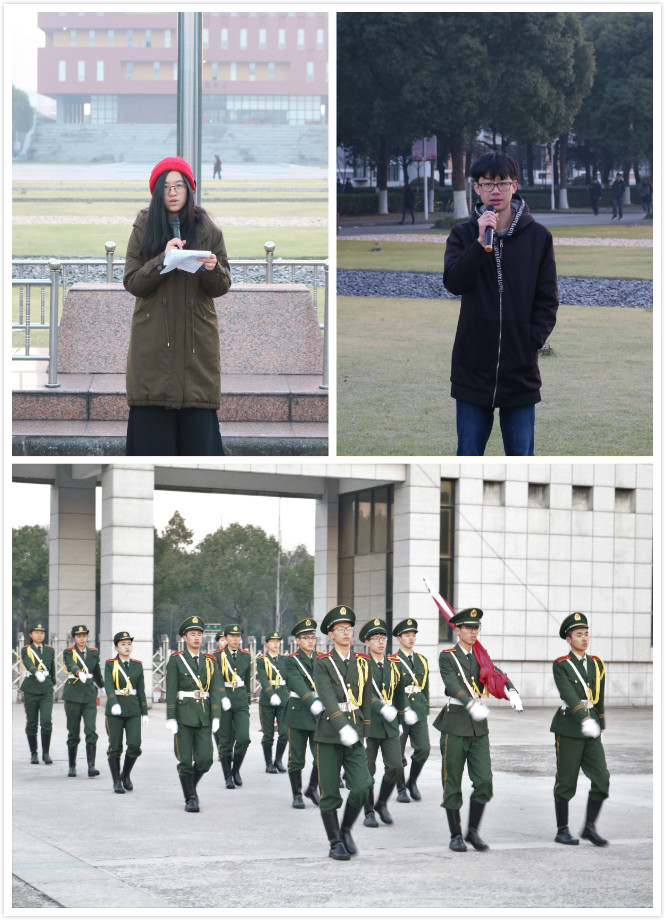即使寒风刺骨,全体同学依然准时到达,伴随着国旗护卫队成员铿锵的脚步声,五星红旗缓缓向升旗台靠近。随着国歌的响起,五星红旗冉冉升起。仪式之后,17级学生代表李易潼发表了以《如何弘扬和实践社会主义核心价值观》为主题的讲话。她在讲话中提出核心价值观是一国之“维”、一国之“纲”,是一个国家、民族的精神旗帜,是人民的精神家园。如果一个民族,一个国家没有共同的核心价值观,那这个民族这个国家就无法前进。当代青年,不仅是社会主义事业建设者,还是社会主义的接班人。在场的同学们应把弘扬和践行社会主义核心价值观,作为在校期间的重要使命。