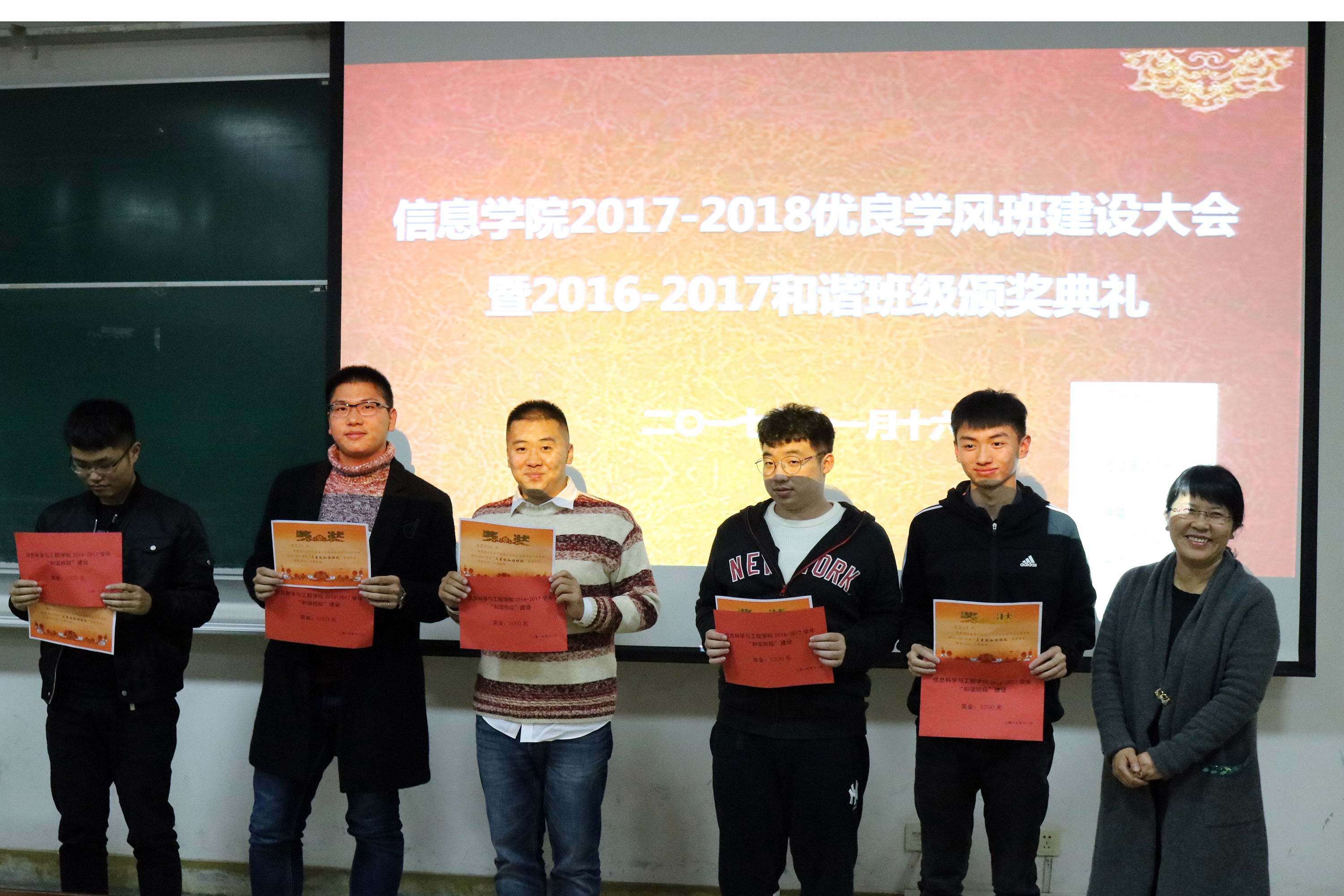 为加强学院学风建设,tyc8722太阳集团于11月16日18时30分在SC103举行学风建设大会与和谐班级颁奖典礼。tyc8722太阳集团党总支副书记傅晓宇老师、辅导员龚欣欣老师及tyc8722太阳集团各班班委出席本次大会,辅导员徐益亮老师担任主持人。