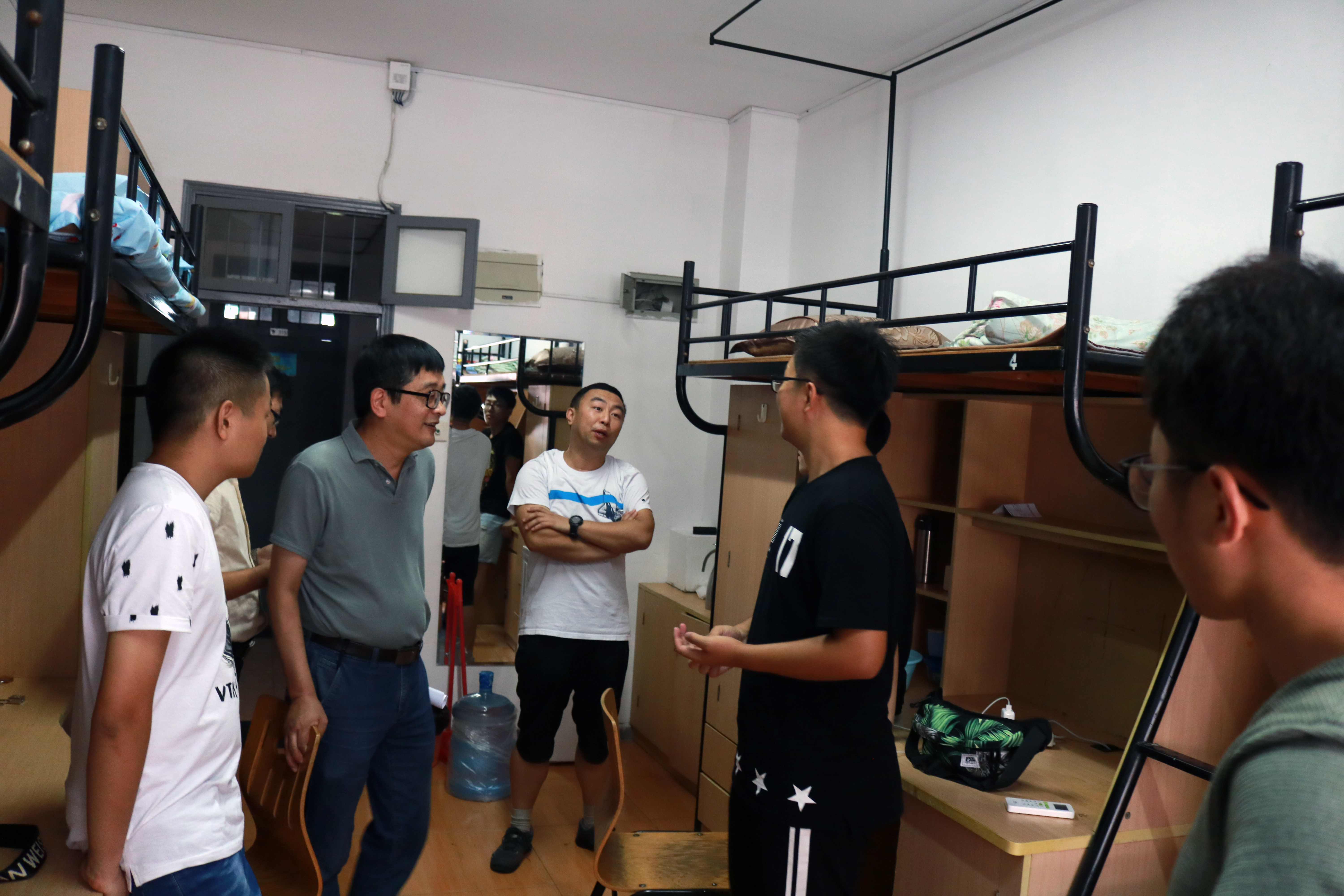 为迎接新生,了解新生面貌,tyc8722太阳集团党委书记胡超老师、党委副书记傅晓宇老师、副院长陶吉利老师、院长助理裘君老师,以及辅导员杜明珠老师、龚欣欣老师、徐益亮老师于9月3日下午3时下寝慰问新生。