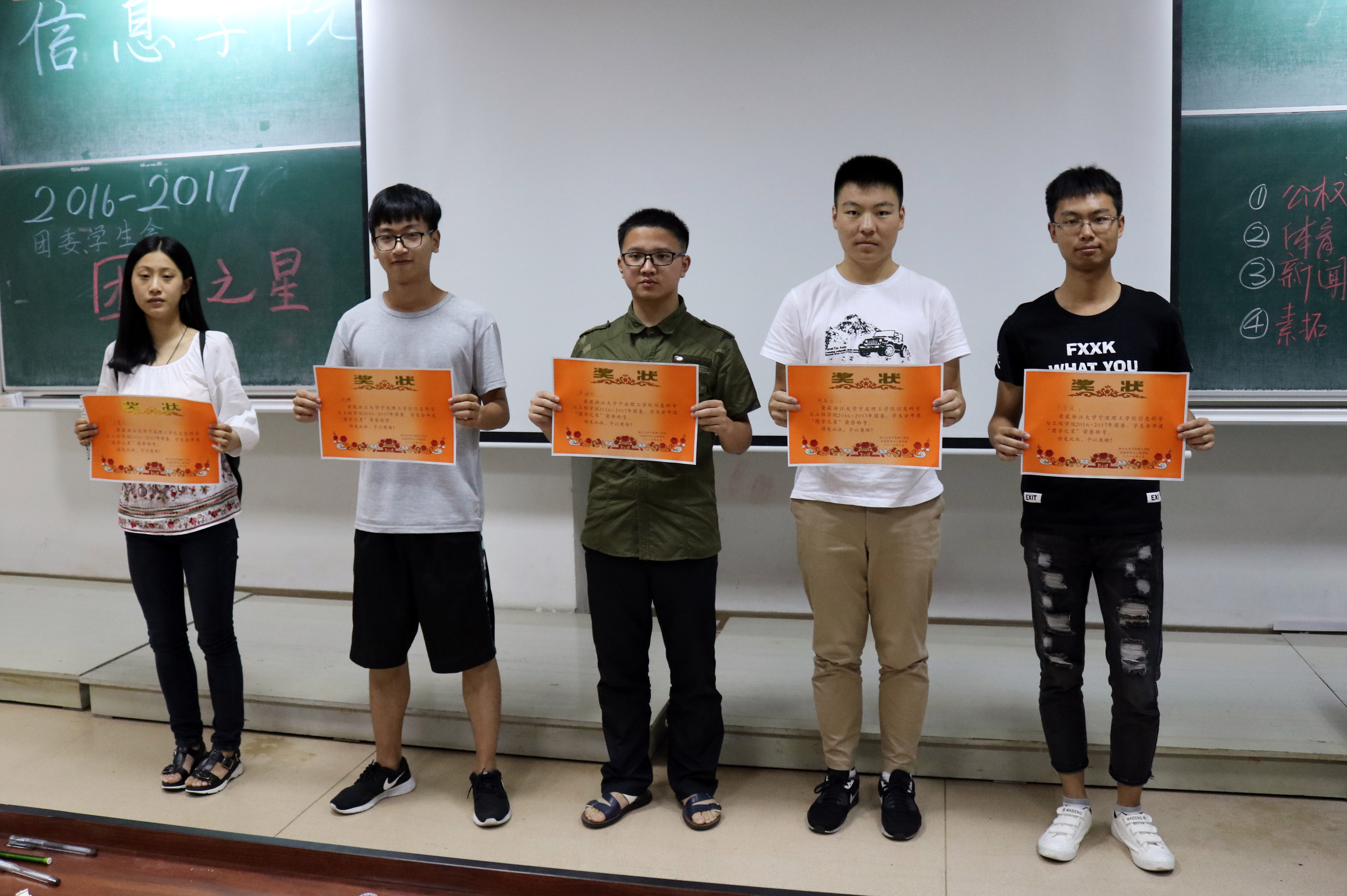 评比顺序由抽签决定。演讲的同学们都讲述了各自部门的主要职务以及自己在部门的心得体会,部长们也就干事的发言提出一些问题。从PPT的播放以及演讲中可以看出,同学们花费了一定的时间和精力去积极地准备。整场比赛气氛热烈,掌声不断。团学的干事们用自信、激情和真挚的语言讲述着自己在部门的点滴。展现出信息团学积极向上的精神风貌。最后,综合各部长对演讲者的评分,评选出五位团委、学生会年度“团学之星”。