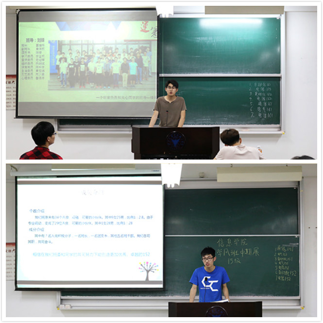 首先,由各班长抽签决定展示顺序。各班级集思广益,用精心准备制作的PPT向在场同学汇报入校以来的学习、生活情况,以及班级开展的众多文体活动。一幅幅生动画面体现出同学之间团结友爱之情谊,展现出大家朝气蓬勃的大学生活。每个班级也列出自己班级的不足与改进方案,希望能在以后使班级有更大的进步。最后,在场每一个同学完成对各个班级的评分,本次优良学风班中期展也到此结束。