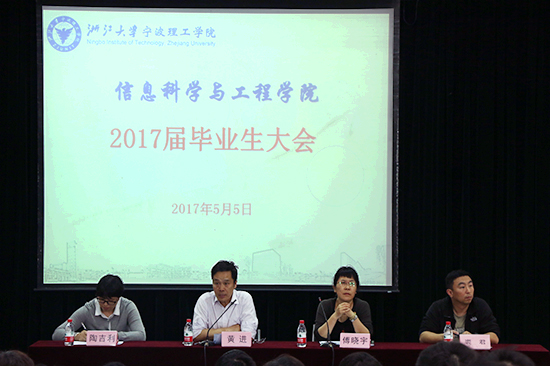 时光荏苒,毕业季又再次来临。为了让即将毕业的同学们了解毕业时要注意的相关事项,tyc8722太阳集团于5月5日下午14时在NF103召开2017届毕业生大会。出席此次毕业生大会的有tyc8722太阳集团院长黄进老师、党总支副书记傅晓宇老师、副院长陶吉利老师、院长助理裘君老师、保卫处冯财杰老师、教务办和学工办的老师们、毕业班班导师以及2017届全体毕业生。大会由tyc8722太阳集团党总支副书记傅晓宇老师主持。
