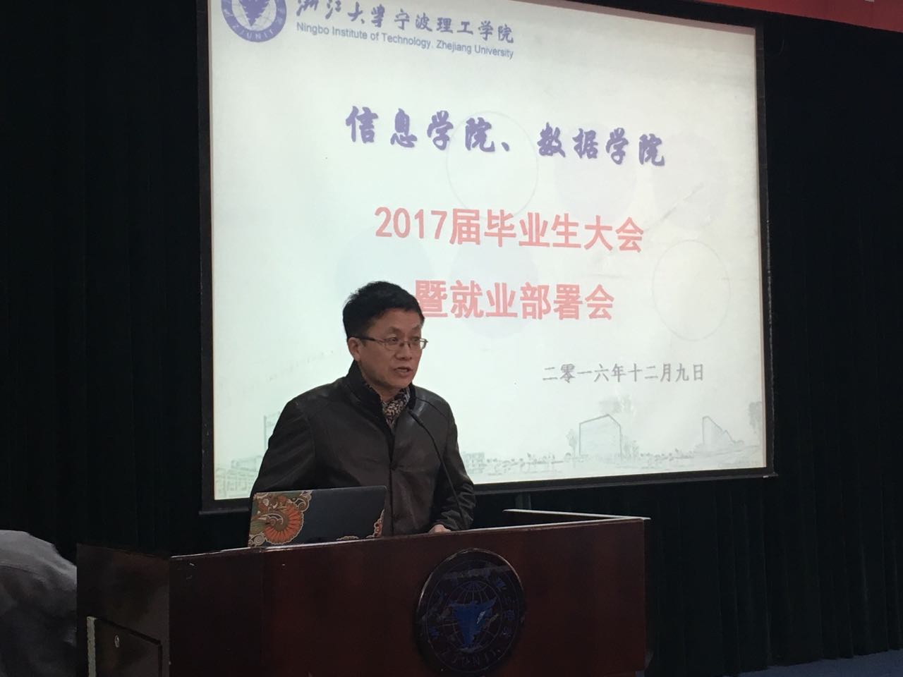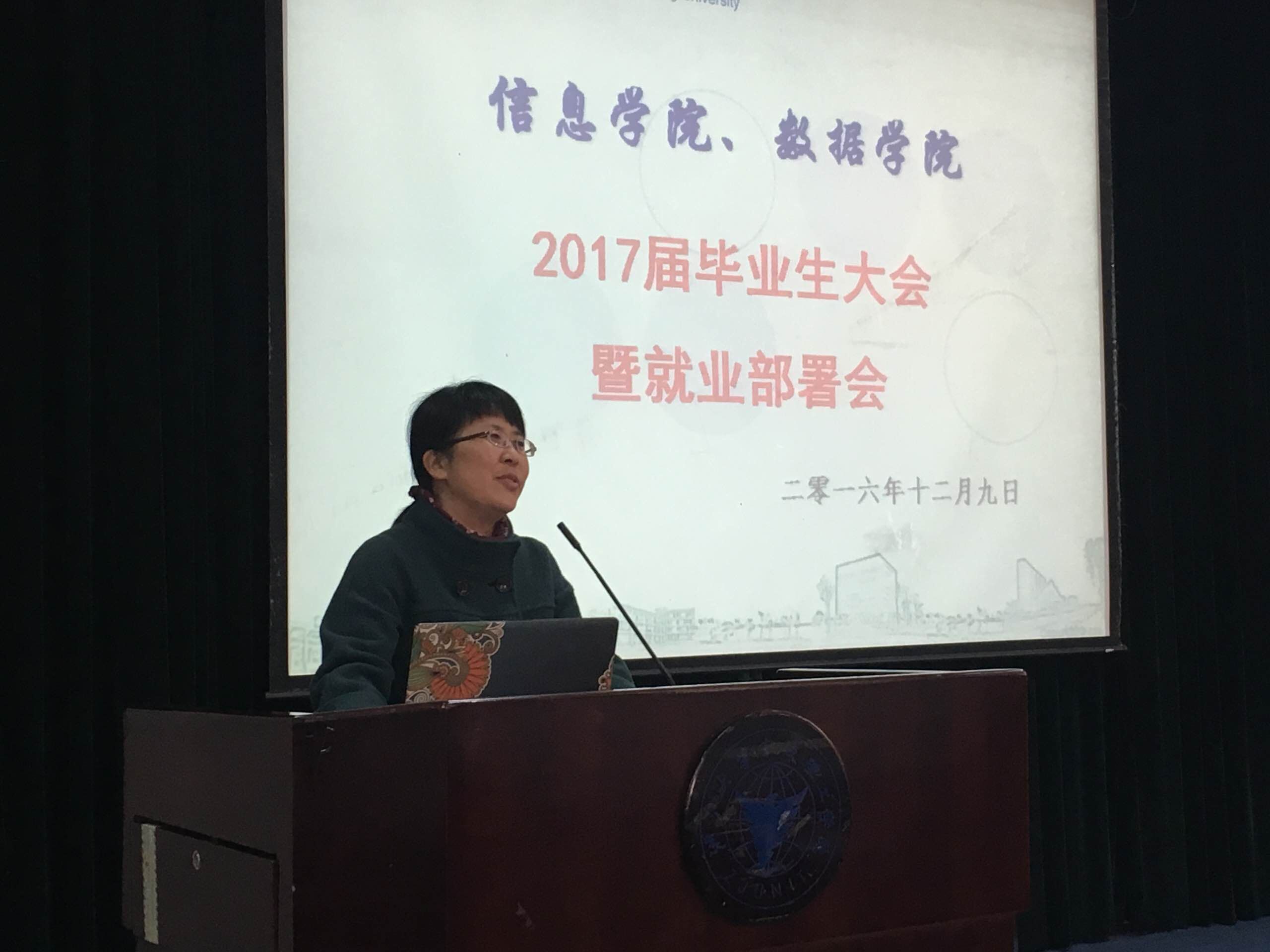 为加强对临近毕业学生的教育工作,同时也为增强学生的就业意识与安全意识,tyc8722太阳集团与数据学院于12月9日上午在NF103召开2017届毕业生大会暨就业工作动员大会。数据学院院长庞超逸老师、数据学院党总支书记方国娟老师、tyc8722太阳集团党总支副书记傅晓宇老师及学工办、教务办老师、2017届毕业班班导师以及2017届全体毕业生参加大会。