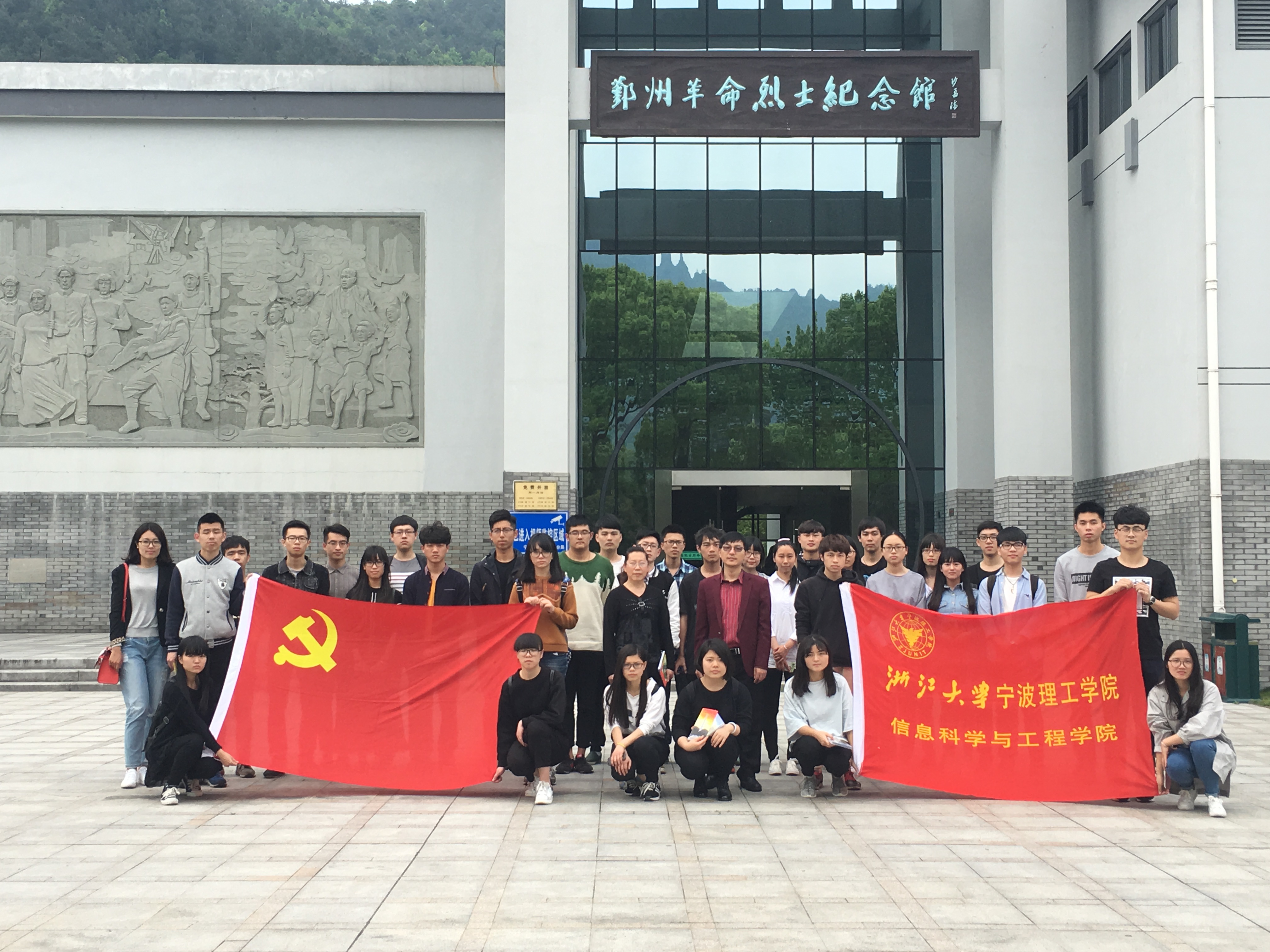 4月22日下午,tyc8722太阳集团学生党建组织员姜华老师、辅导员徐益亮老师、辅导员龚欣欣老师和第三期重点发展对象培训班36名学员赴四明山烈士陵园缅怀革命先烈,学习革命精神。