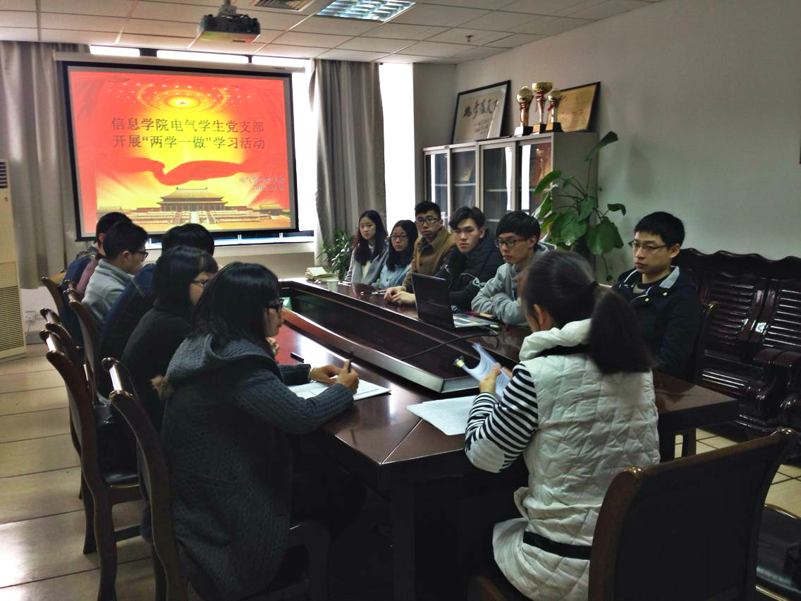 在中共中央办公厅印发《关于在全体党员开展“学党章党规、学系列讲话,做合格党员”学习教育方案》之际,为了让学生党员更好的学习和贯彻“两学一做”的内容,tyc8722太阳集团电气学生党支部于2016年3月6日下午在石麟大楼903-3会议室举行了“两学一做”学习会议。支部书记王常青和全体学生党员参加了此次会议。本次会议由支部书记王常青主持。