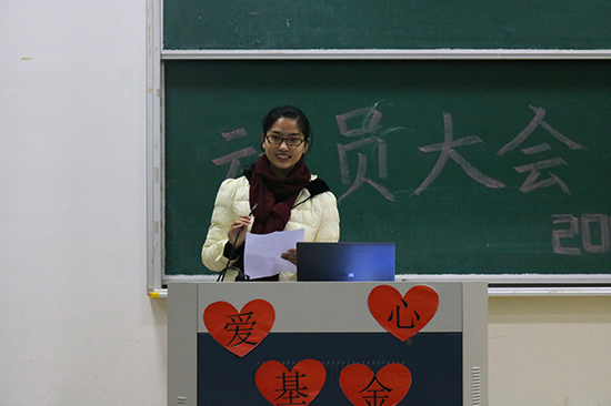 大会开始后,首先由主持人介绍了学院“爱心基金”的历史、爱心募捐的目的以及爱心基金历年的捐助和使用情况。随后爱心使者代表王梦钒和学生会主席赵天鹏同学上台发言,呼吁在场学生积极参与爱心捐助。受助者代表王同学也表达了对困难中给予帮助的老师和同学的感激,并表示自己不会辜负大家的期望。会议最后辅导员丁志远老师作动员讲话,他从学院历年资助过的同学谈起,列举了几位在学院爱心基金帮助下度过难关甚至挽回生命的例子,倡议同学们奉献自己的爱心,来帮助我们身边更多需要帮助的同学。