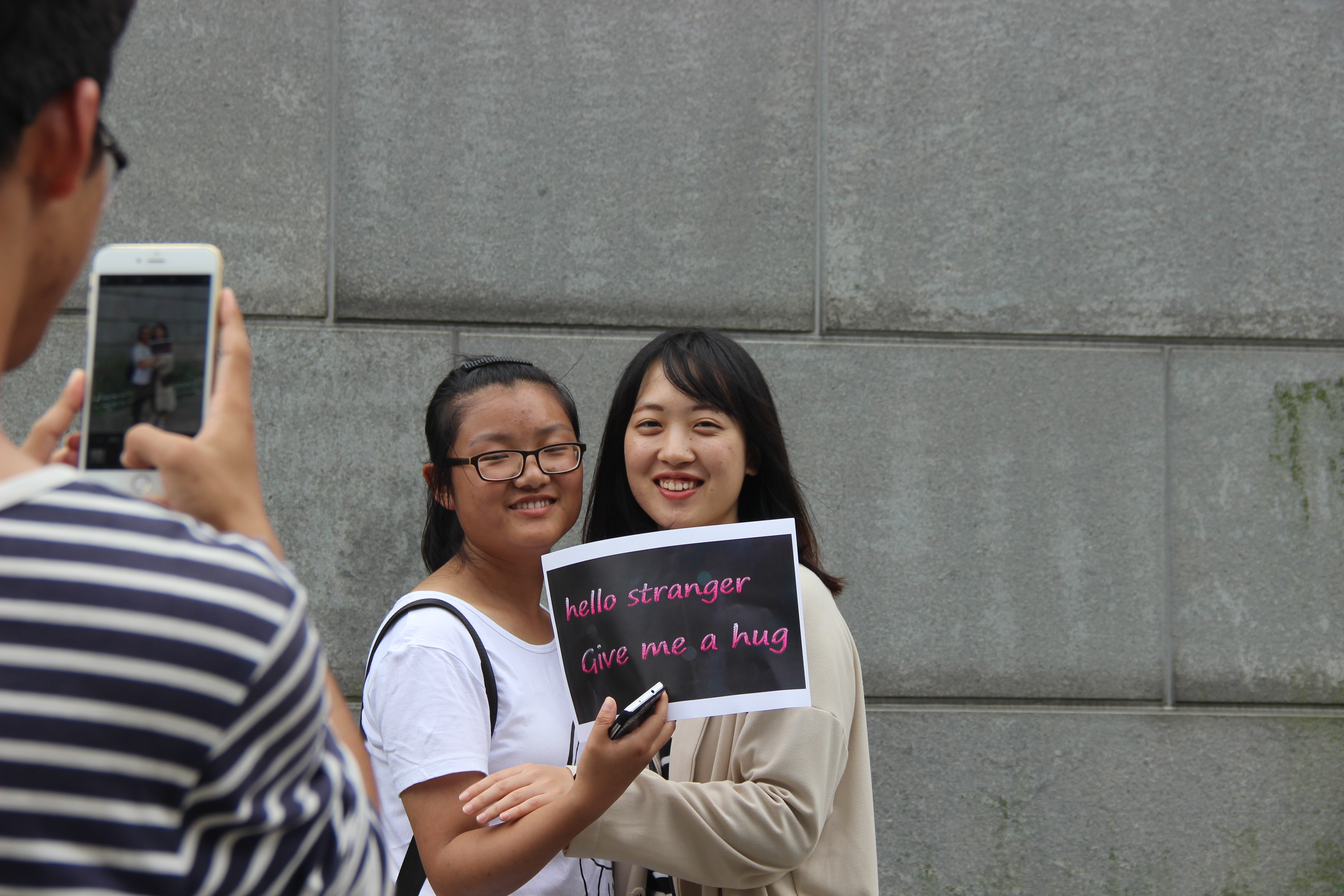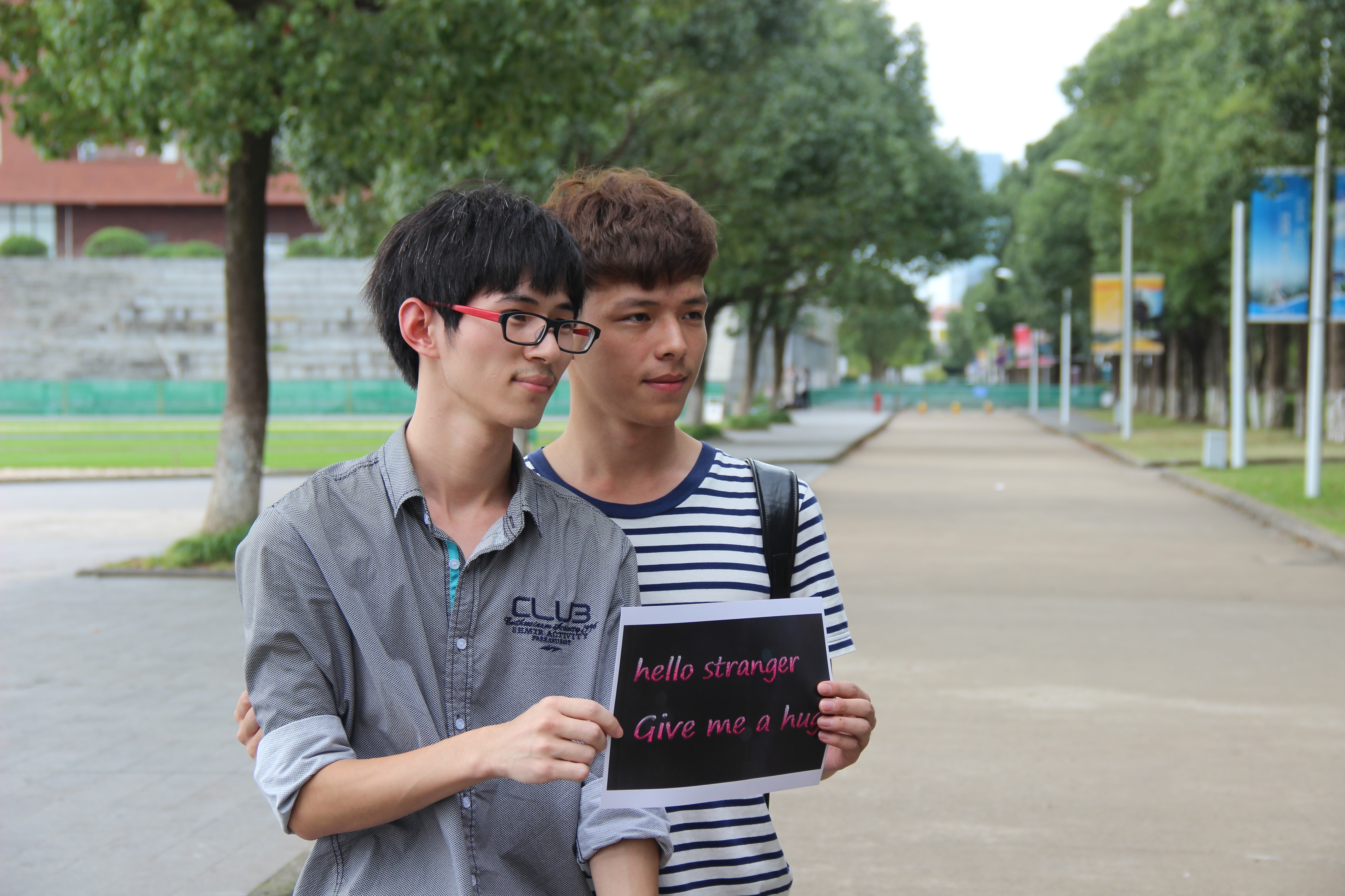 “同学你好,我是某某学院的某某某,我们并不认识,但是你愿意花一点时间与我共同完成跳大绳的挑战吗?”“同学你好,我是某某某,你愿意暂时放下手里的手机,我们互相认识一下可以吗?”活动现场不断响起类似的招呼声,越来越多人加入到了认识陌生人、拥抱陌生人的活动中来。
