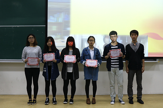 颁奖典礼上,优良学风寝室、骨干示范寝室、爱心互助寝室、英语天地寝室、科研创新寝室、特色阳光寝室、文体特长寝室和进步榜样寝室等八个奖项分别颁给了各个优秀寝室。每个奖项的获奖寝室都有9#123的身影,因此她们毫无疑问的被评为标兵寝室。9#123的成员代表上台向大家介绍了她们寝室成员及特色,丁老师鼓励各寝室成员以9#123为榜样努力营造一个更加良好的寝室环境。