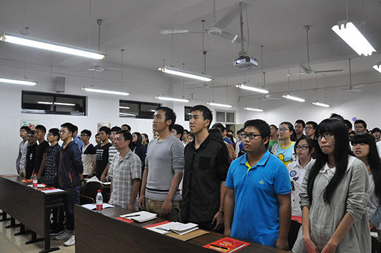 在庄严的国歌声中,开学典礼拉开帷幕。王常青老师向在场学员们宣读了党校教学计划、党校教学管理暂行规定。接着,学员代表软件141班丁冠超同学上台发言,他首先表达了强烈的入党愿望,并代表全体学员表态要抓住党校学习的机会,认真听讲,并在实际学习工作中处处发挥先锋模范作用,争取早日入党。