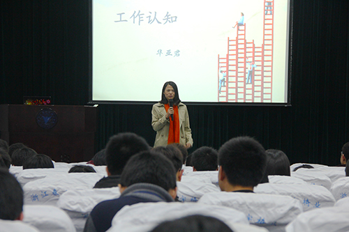 本次讲座邀请到了太平鸟公司HR部门的华亚君老师担任主讲。华亚君老师以工作认知为主题,结合自己十多年的工作经验,首先与同学们分享了自己初次踏入职场的心路历程。随后她分析了当前的就业形势和岗位要求,对同学们进入社会应该做的准备提出建议。华老师建议同学们首先需要做好充分的心理准备,其次学历等方面的准备同样必不可少,然后要有一份简明但不简单的简历以及得体的着装,并且建议同学们应该及时关注招聘信息。华老师特别强调大学生在大学期间一定要有一份适合自己的职业生涯规划。讲座最后,华老师与同学展开现场问答,对同学关心的问题一一做了解答。