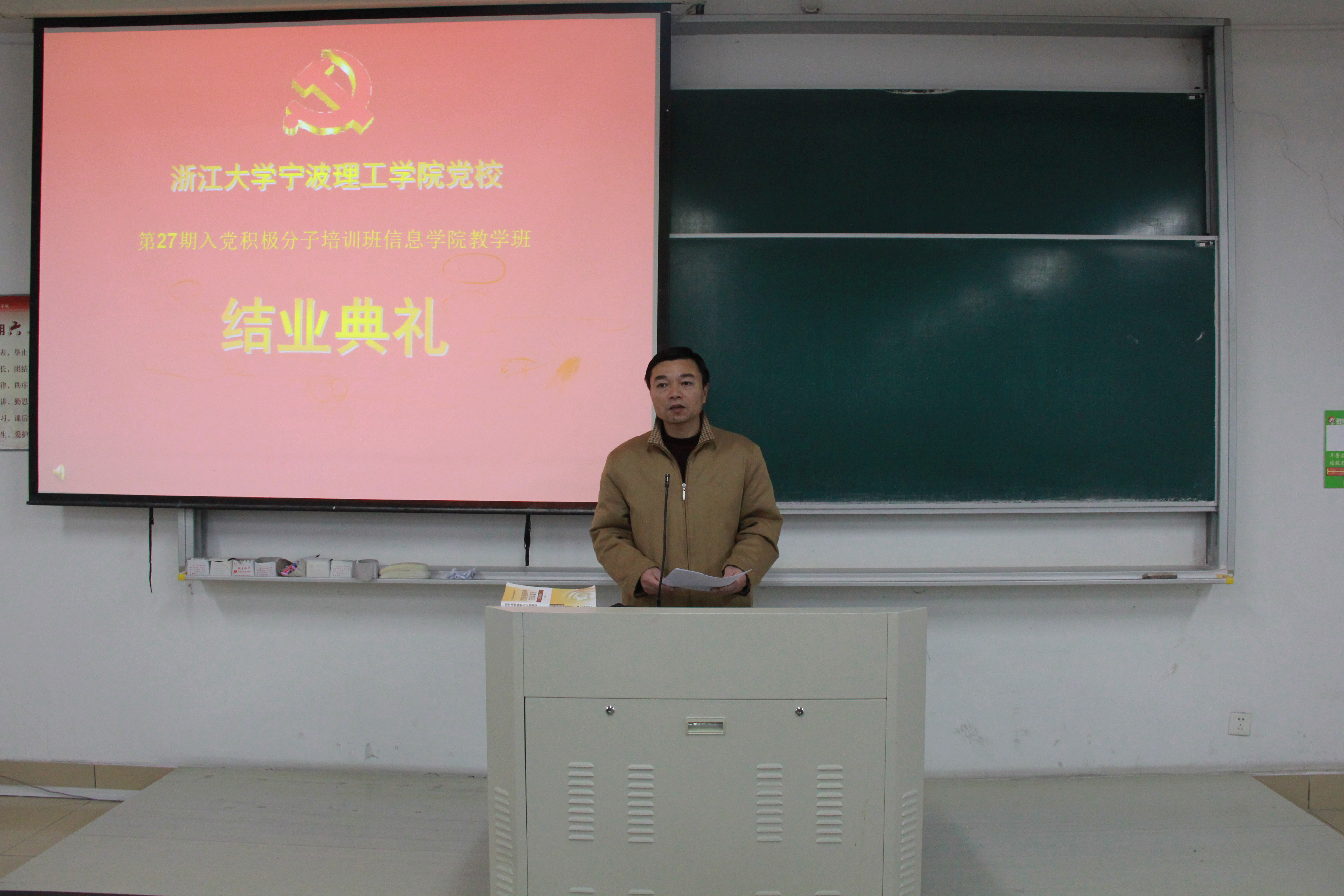 典礼最后,张杰老师讲话。张杰老师对学员们的努力表示肯定,并指出了学习过程中表现出的不足之处,希望学员能在今后的学习、生活中做出表率,并衷心祝愿学员们能通过自身努力早日成为一名合格的共产党员。