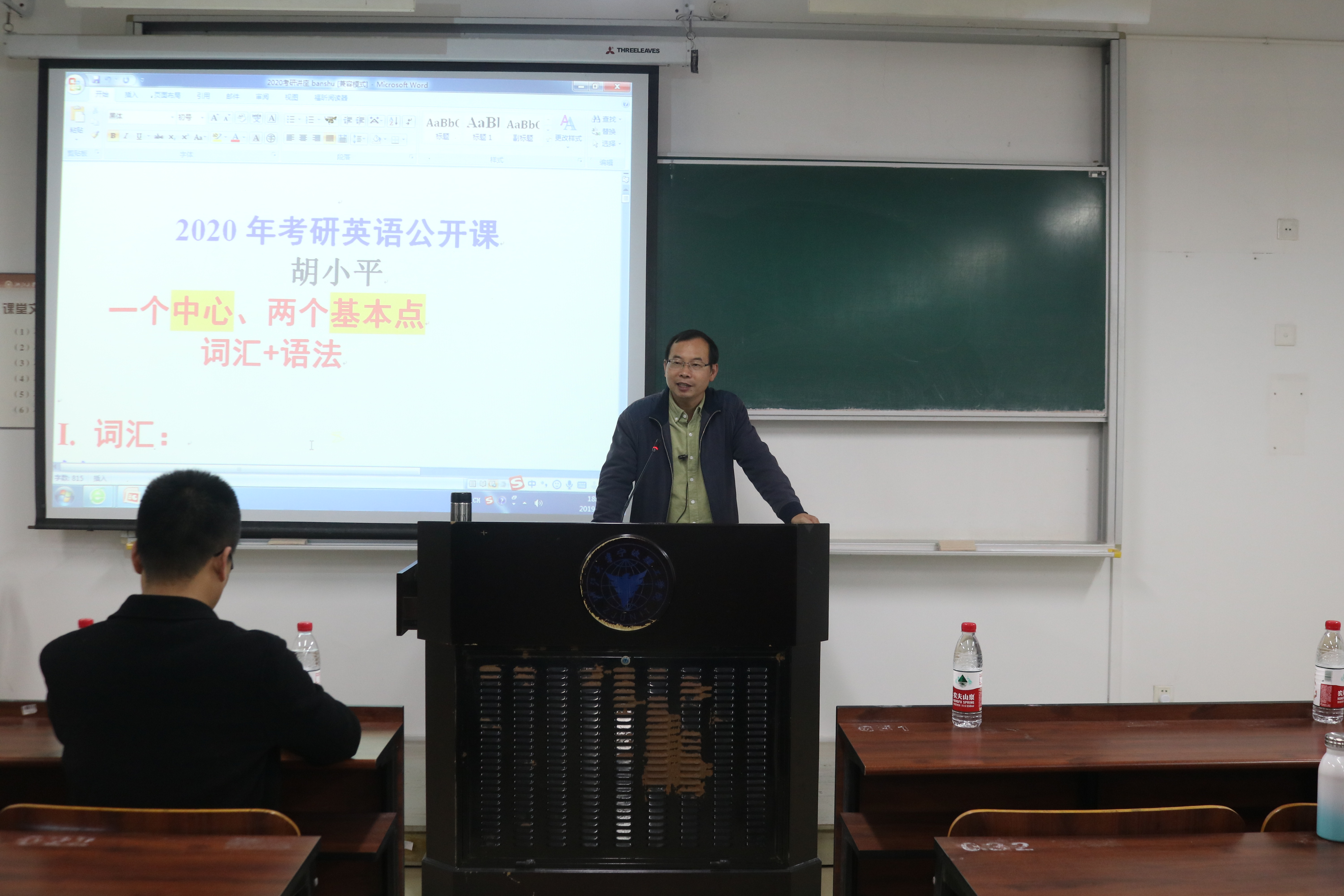 会后,学院特邀考研指导名师,浙江省考研英语阅卷组组长、浙江大学博士胡小平为同学们带了一场精彩的考研英语专题讲座。胡老师围绕“一个中心,两个基本点”,在轻松的氛围和积极互动中展开了一个多小时的专题辅导,在场的同学们纷纷表示受益匪浅。