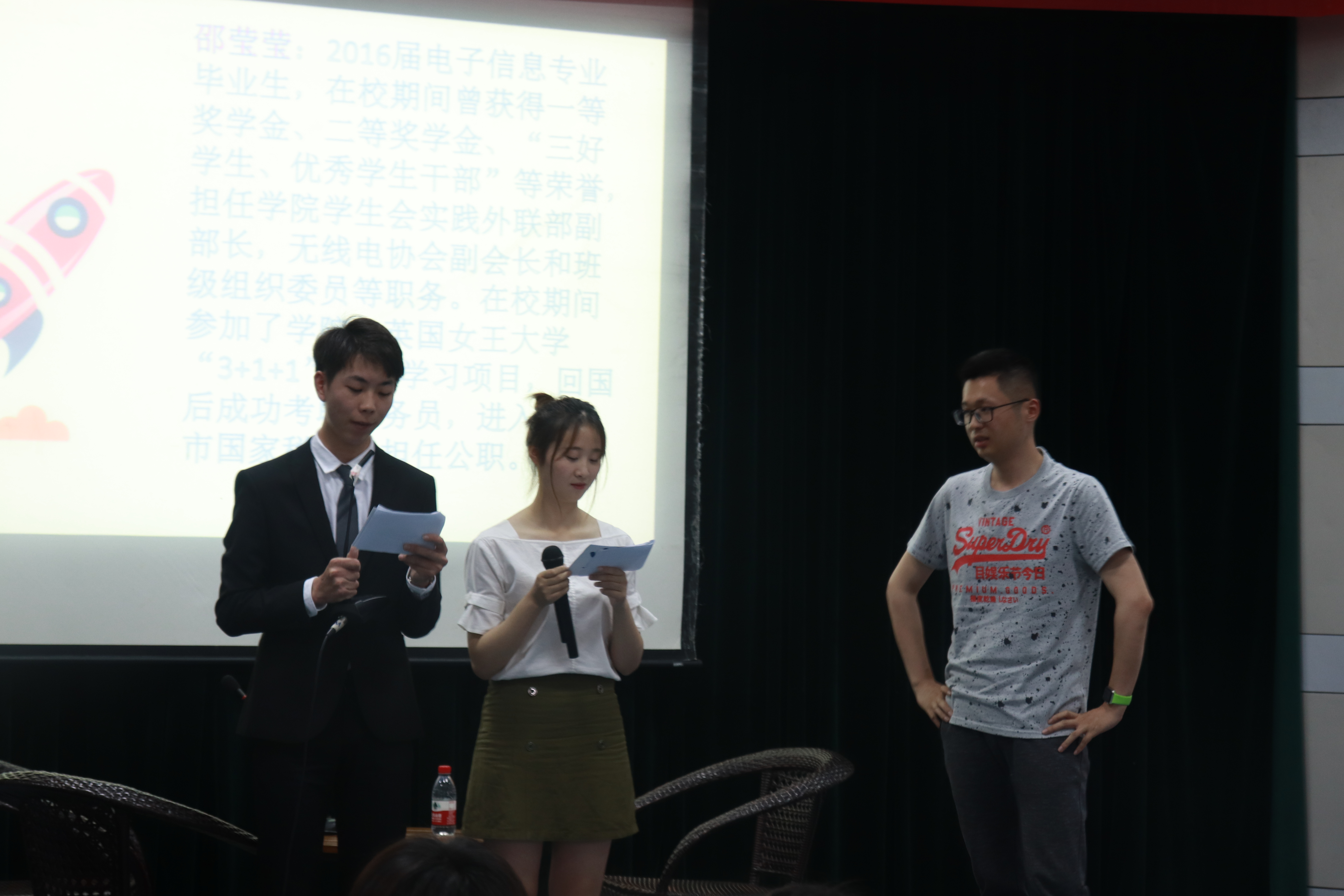 5月25日下午,tyc8722太阳集团在NF103举办第十五届“心有所向,御梦而行”主题成长论坛。tyc8722太阳集团2008届校友黄元君、2012届校友支雄飞、2016届校友邵莹莹作为特邀嘉宾出席活动。tyc8722太阳集团学工办主管杜明珠老师、学院团委书记蒋鹏涛老师以及学院200余名学生参加了活动。