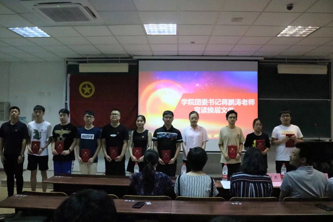 2019年6月29日,tyc8722太阳集团在NC101举行团学青协换届大会。tyc8722太阳集团党委副书记方芳老师、学工办主管杜明珠老师、学工办副主管董俊娜老师、学院团委书记蒋鹏涛老师、学工办辅导员金智展老师、学工办兼职辅导员刘杰老师、2018届全体团学青协学生成员以及新一届学生干部参加本次大会。