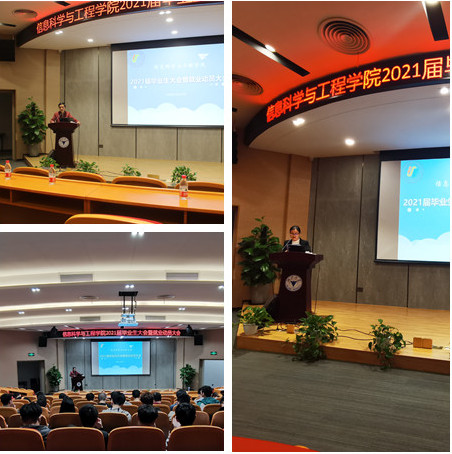 学院通过召开毕业生大会、就业动员大会给学生营造就业仪式感,树立就业信心。10月22日,tyc8722太阳集团在启新大讲堂召开2021届毕业生大会暨就业动员大会。tyc8722太阳集团院长黄进从当前国内外疫情形势和毕业生就业形势出发,详细分析了2021届毕业生就业所面临的严峻形势,指出后疫情时代应届毕业生就业要积极转变就业观念,认清就业形势,提高就业主动性,并向在座的同学们提出三点建议和希望,即,希望同学们客观认识就业形势,放平心态;建议同学们处理好学业和就业关系,科学规划职业生涯;希望同学们打开思路、转变观念,将小我融入大我,积极响应国家号召,到祖国需要的地方去,奉献青春抒写人生精彩华章。