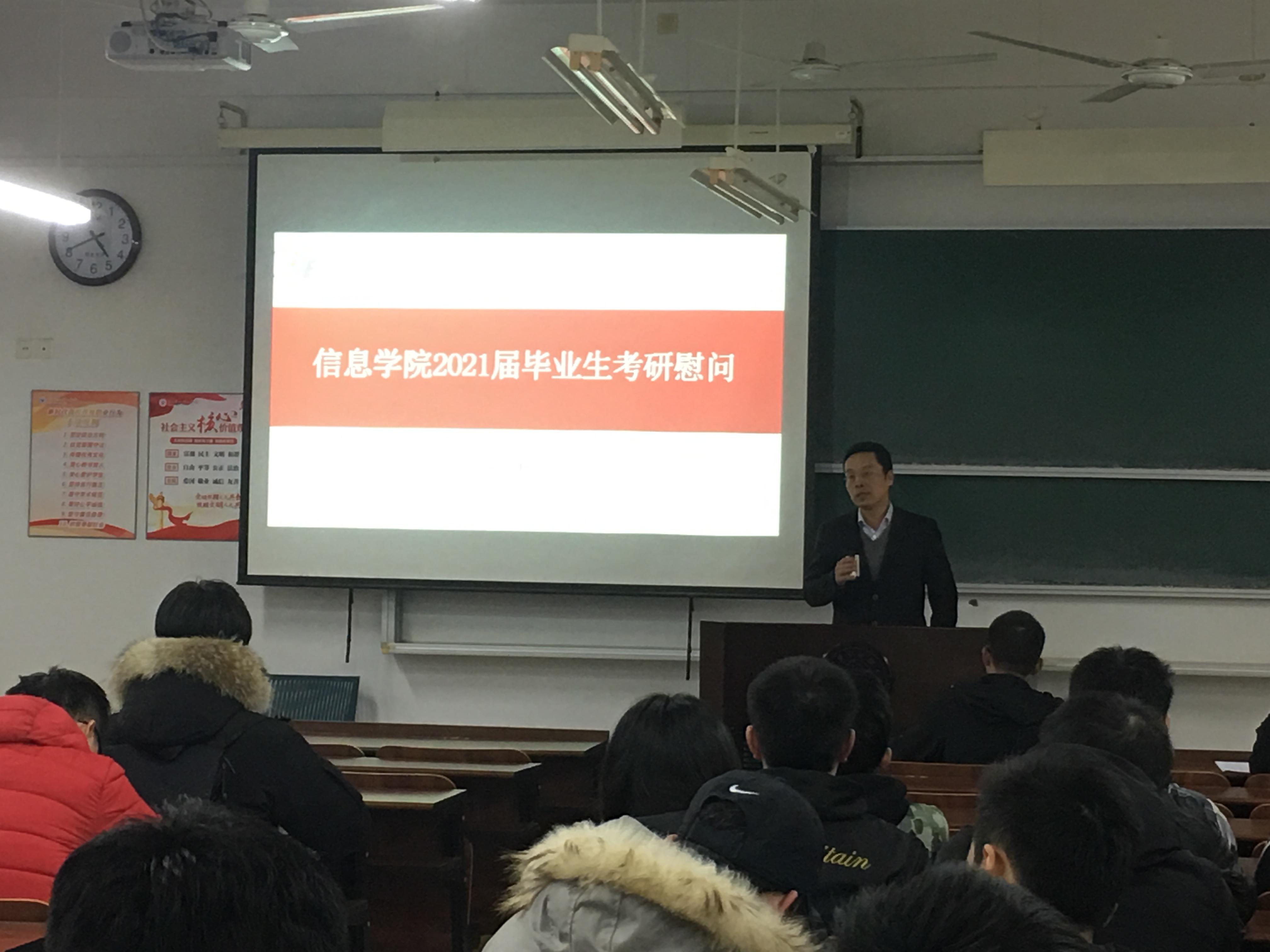 为给努力奋战的考研学子们加油鼓劲,12月3日下午,学院院长黄进,副院长陶吉利,党委副书记、纪委书记方芳以及就业辅导员董俊娜在NB225教室,为同学们送上暖心慰问与祝福。