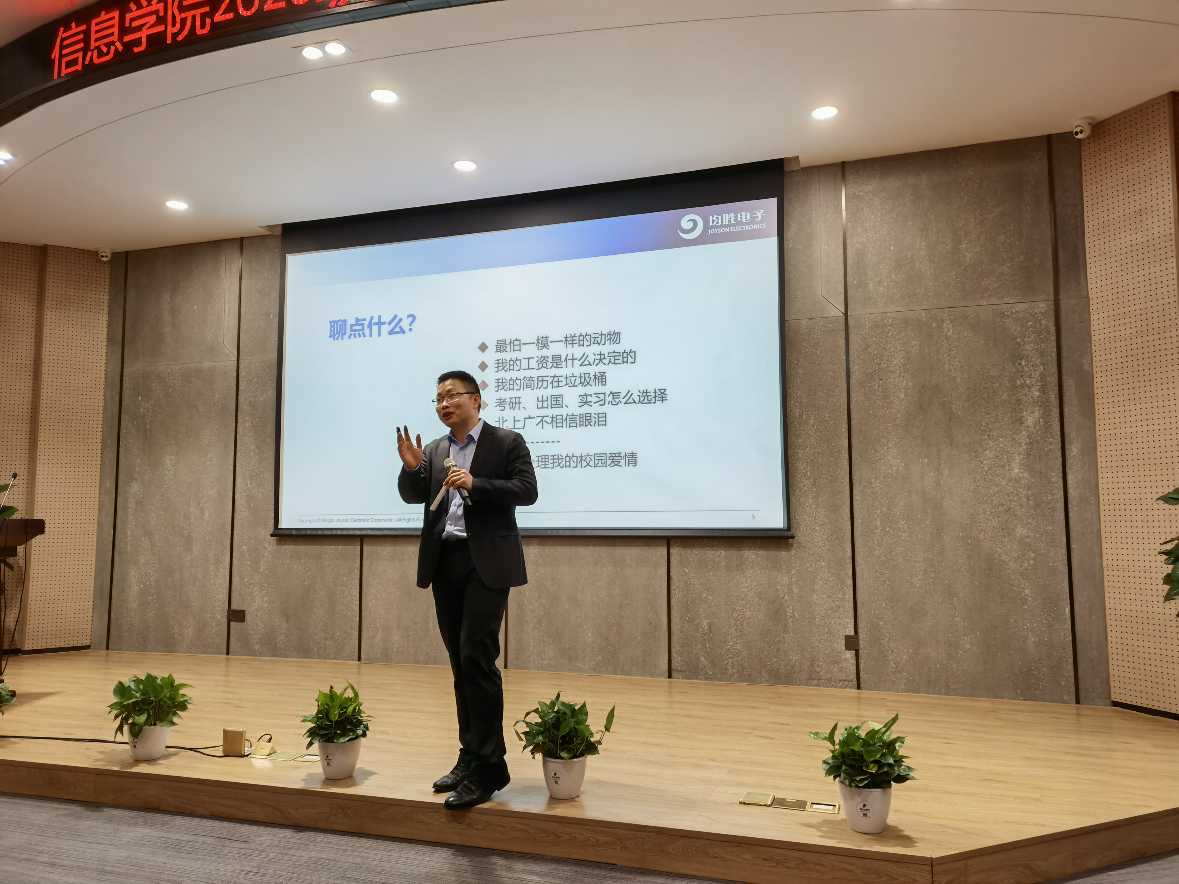 会上,“甬企说之均胜篇”青年成长大型宣讲活动启动,主讲人均胜电子人力资源部经理谢炜先生,以资深HR的多年从业经历,围绕大学怎么读,工作怎么找,如何通过考研出国提升自我的价值等,为tyc8722太阳集团20级学生讲授了一堂生动的生涯规划课,谢老师幽默生动的讲课风格、深入浅出的人生哲理讲解让同学们受益良多。