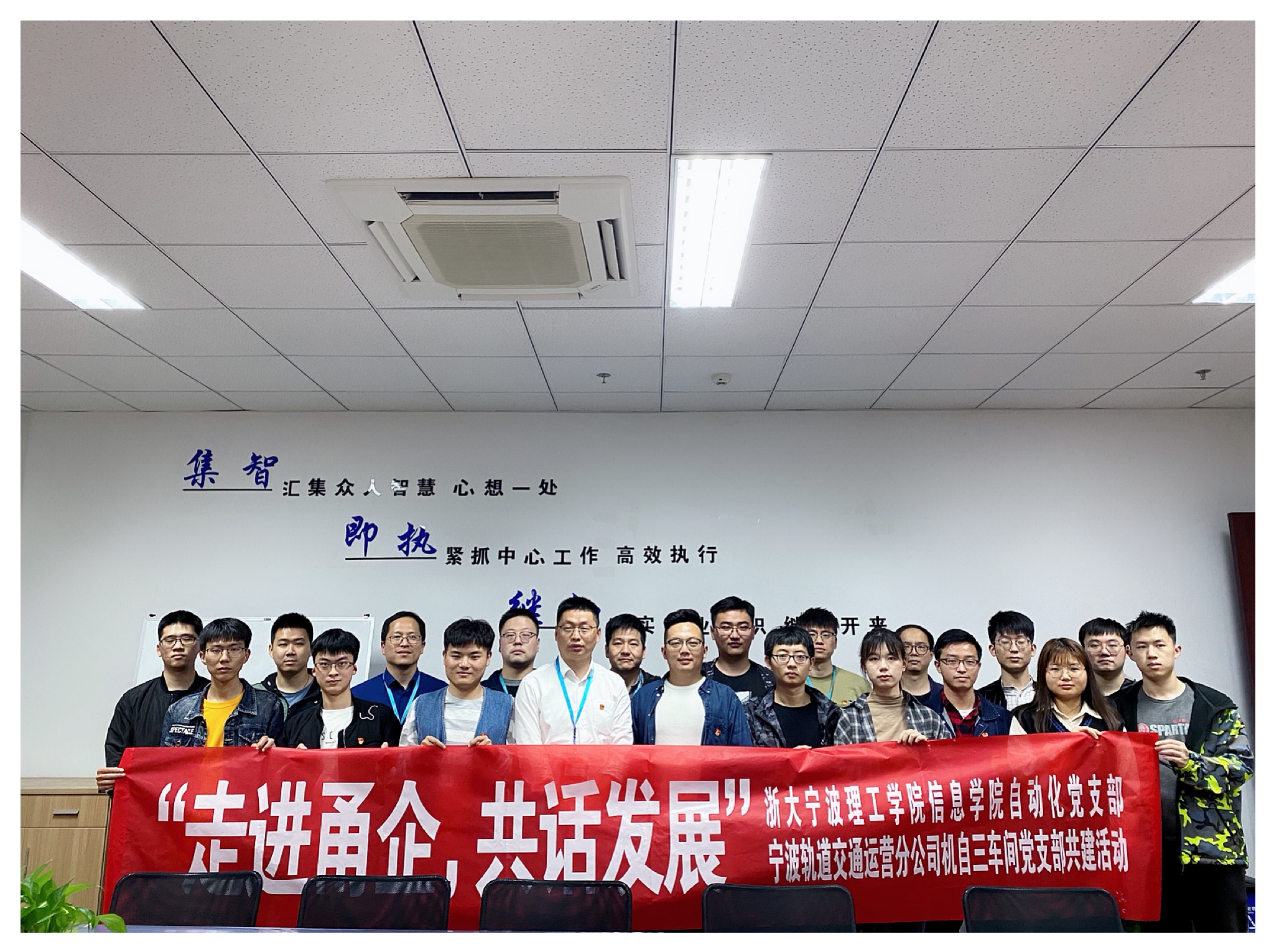 2021年4月23日下午,为深入贯彻落实党的十九届五中全会精神,加强党支部建设,互享资源,共促发展,tyc8722太阳集团自动化学生党支部书记金智展带领支部成员与宁波轨道交通运营分公司机自三车间党支部开展了“结对共建”主题实践活动。