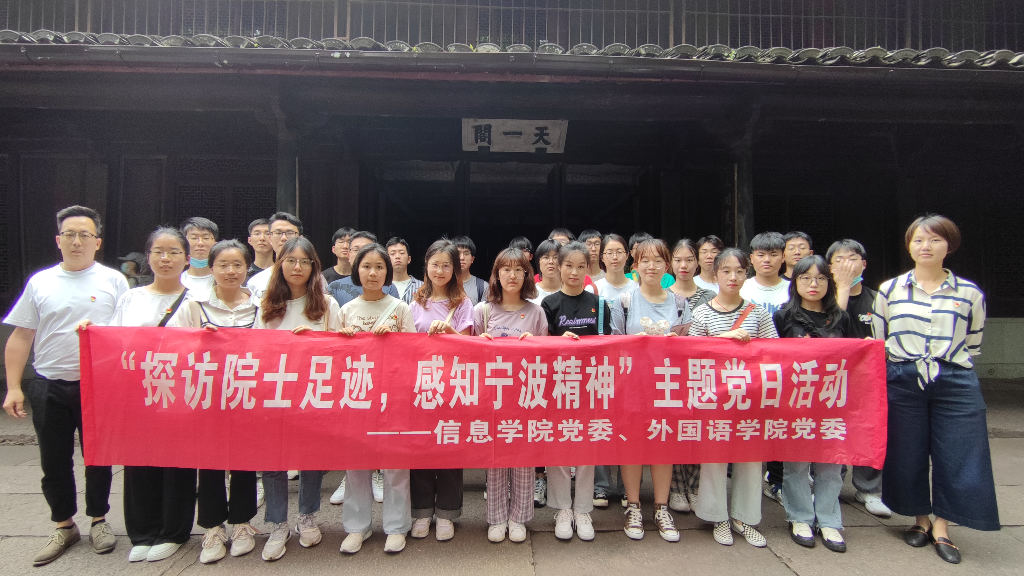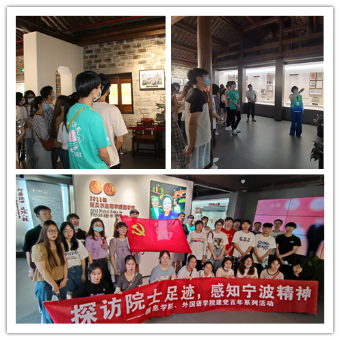 为进一步增进学生党员对宁波人文的故事,宁波传统文化的了解,深入感悟宁波“四知”精神,了解宁波的发展,tyc8722太阳集团与外语学院师生党员于2021年5月28日下午开展了“探访院士足迹,感知宁波精神”的党日活动。