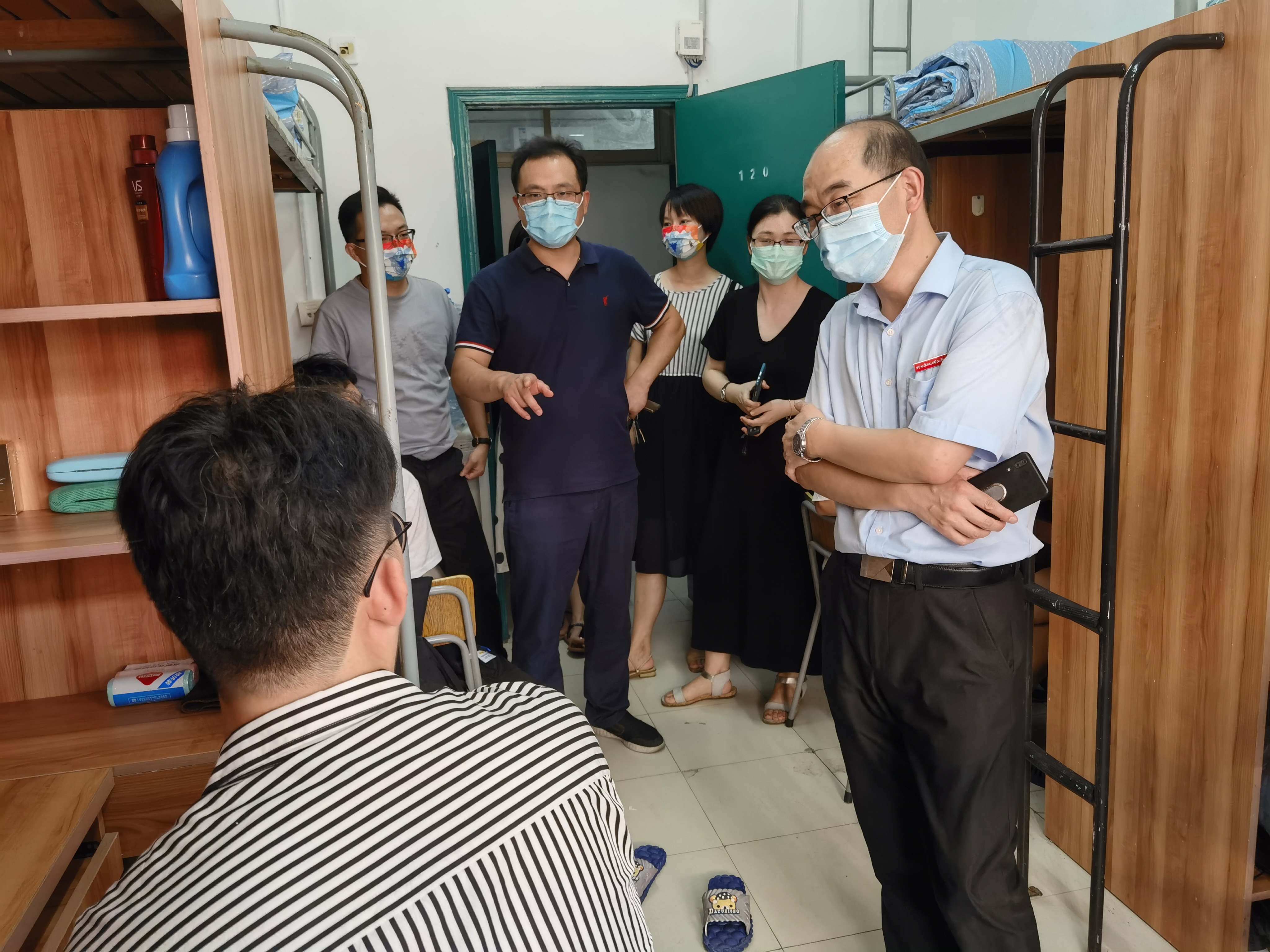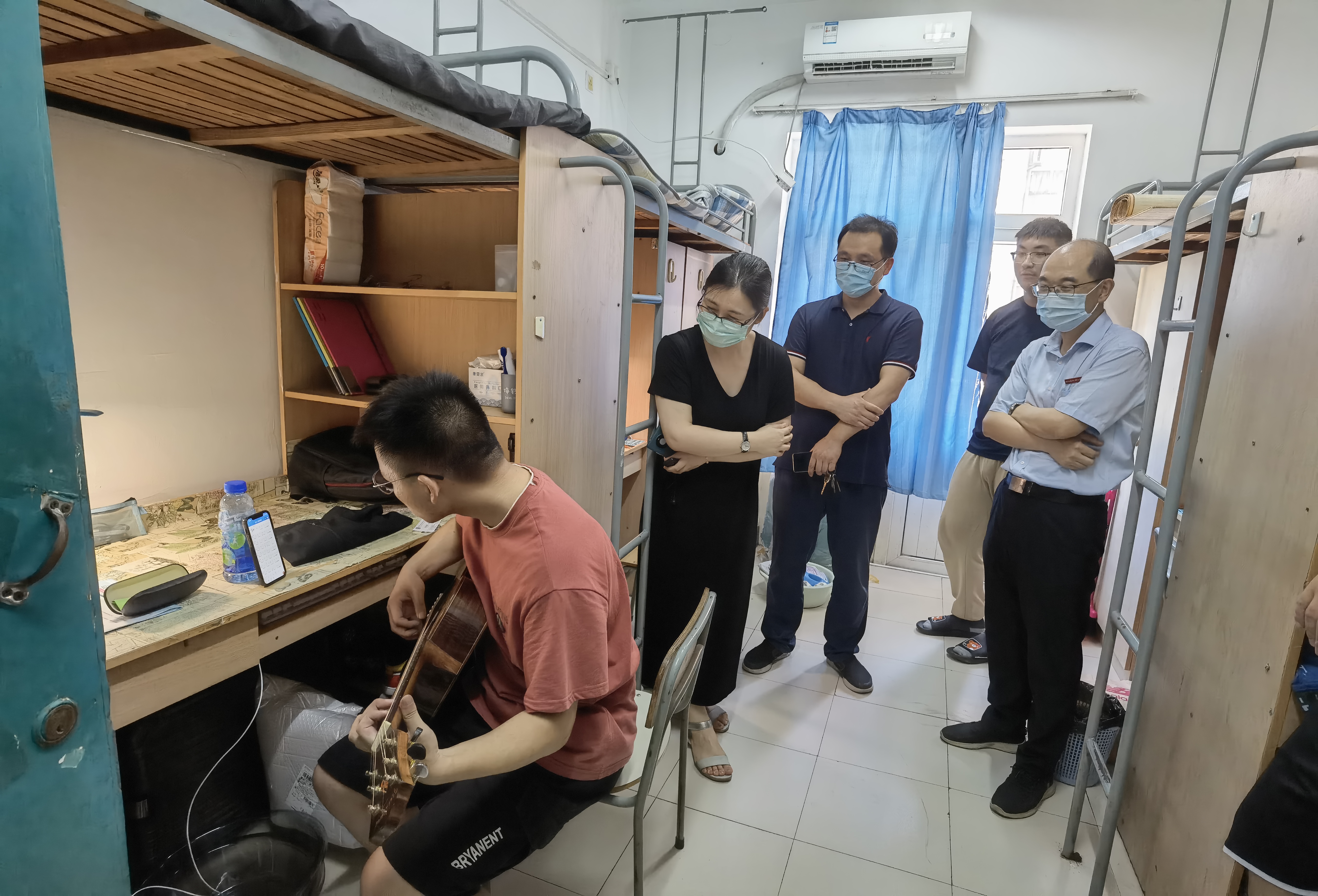 8月28日下午,在学校杨灿军副校长的带领下,tyc8722太阳集团党委书记应中元、副书记方芳及辅导员们,共同走访了新生寝室。老师和同学们拉拉家常,聊聊入学后的感受,细致询问生活上有没有困难,并给予了学习上的温馨提示,走访过程中多才多艺的新生们还为来访的领导老师们即兴演奏了一曲,大家谈笑风生,氛围融洽,新生们充分感受到了来自学院和学校的关心和关怀。