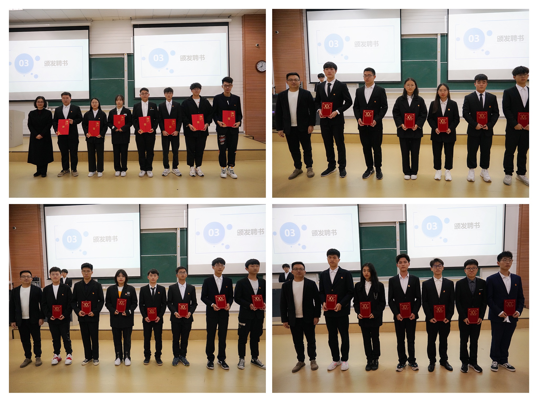 学院党委副书记方芳、学院团委书记金智展为新一届主席团和部长颁发聘书。