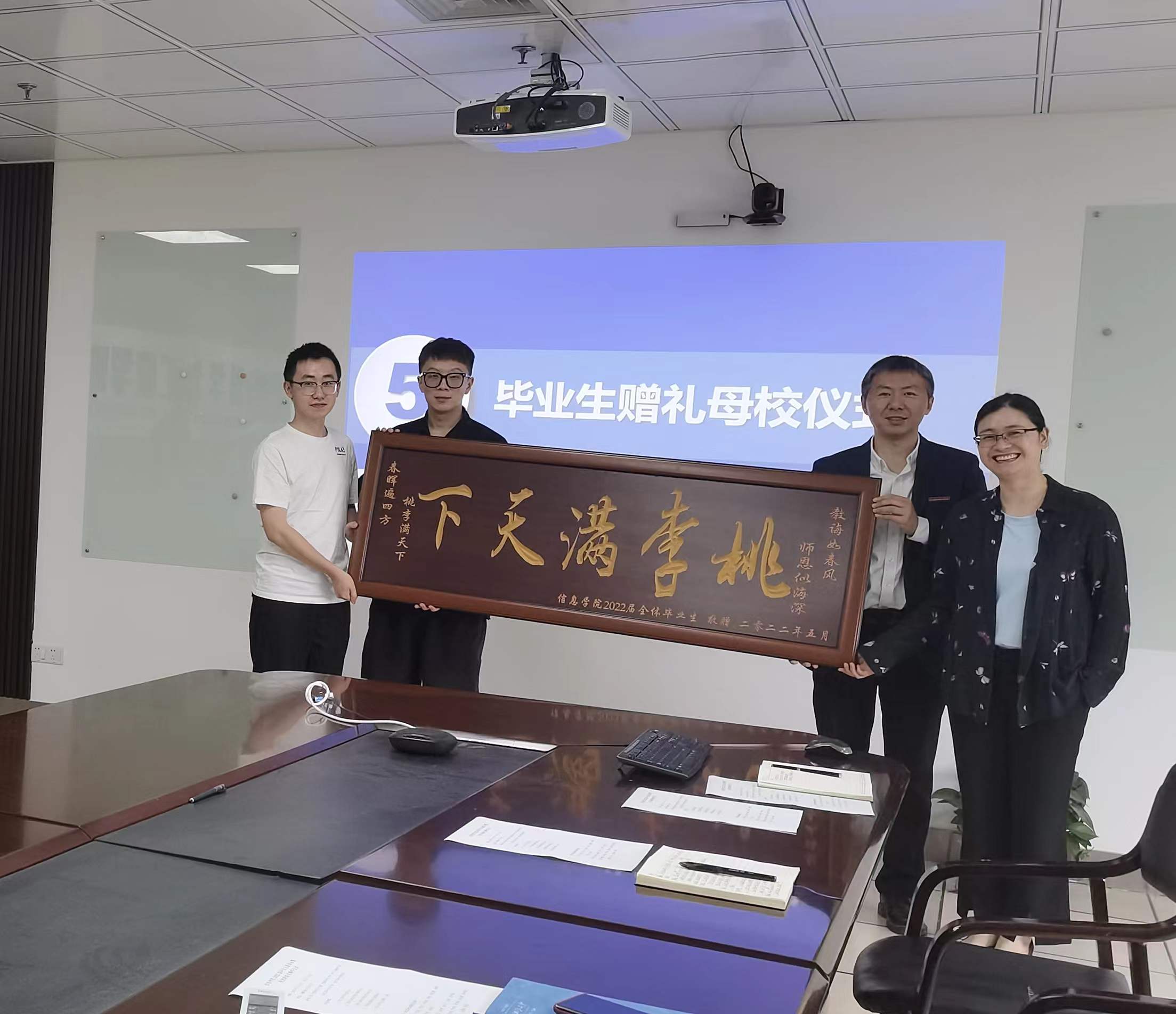 在捐赠仪式上,学院2022届毕业生代表向学院捐赠“桃李满天下”牌匾,感谢母校培育,感恩师长陪伴与教诲,祝福母校桃李满天下。