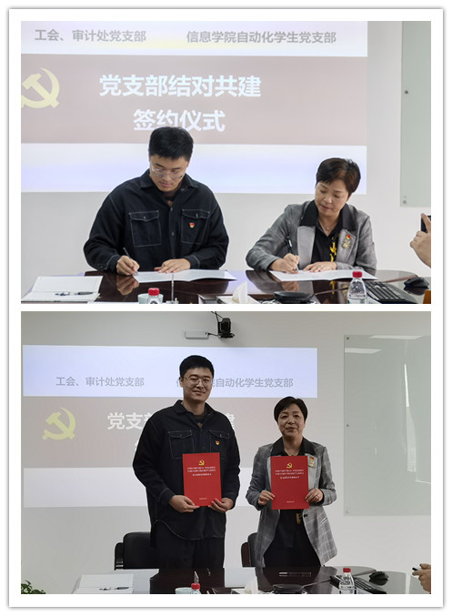 工会、审计处党支部、tyc8722太阳集团自动化学生党支部签订了支部结对共建的合作协议。双方就今后党建工作开展,合力共推基层党建工作水平提升,共享党建资源,共同推进党建质量提升达成共识。